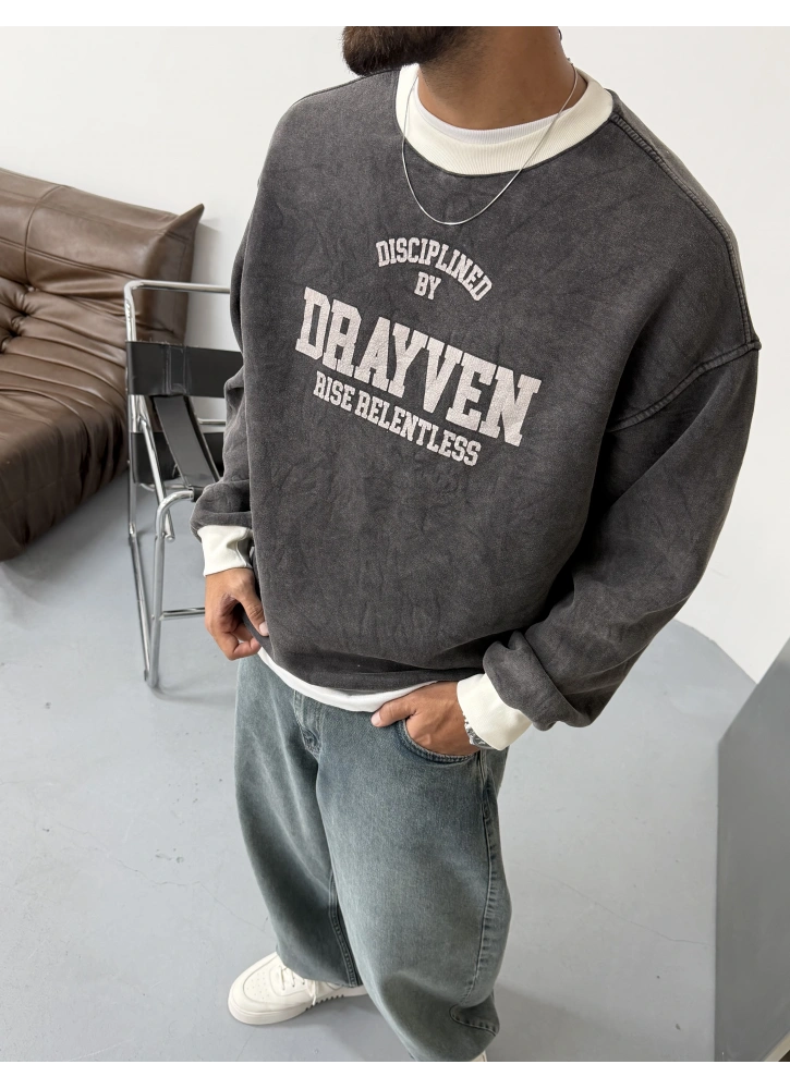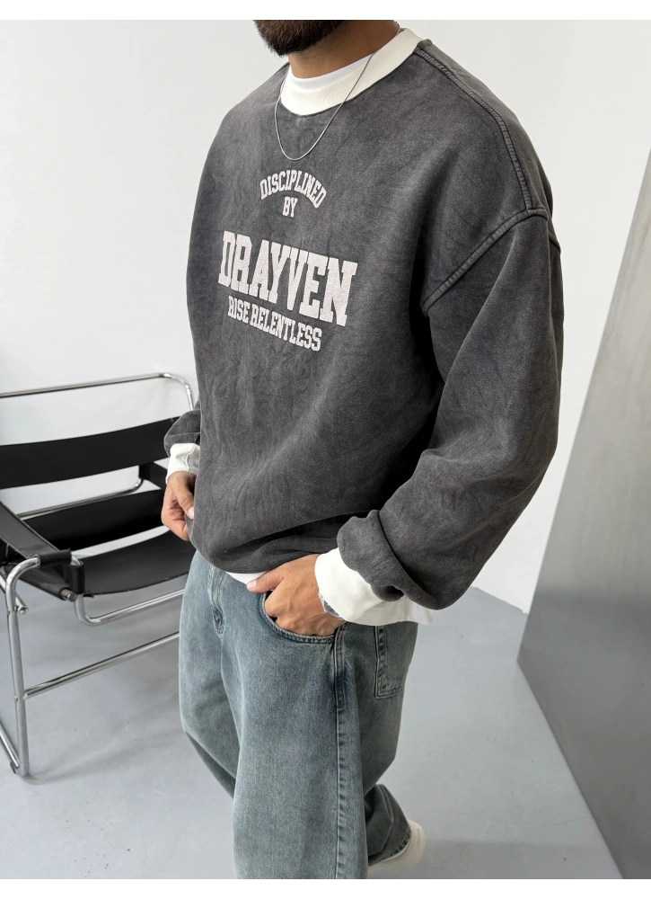 Antrasit Baskı Detay Oversize Sweat, oversize kalıbı ve baskı detaylarıyla modern bir sokak stili sunar. Gün boyu konforlu bir kullanım sağlar.
