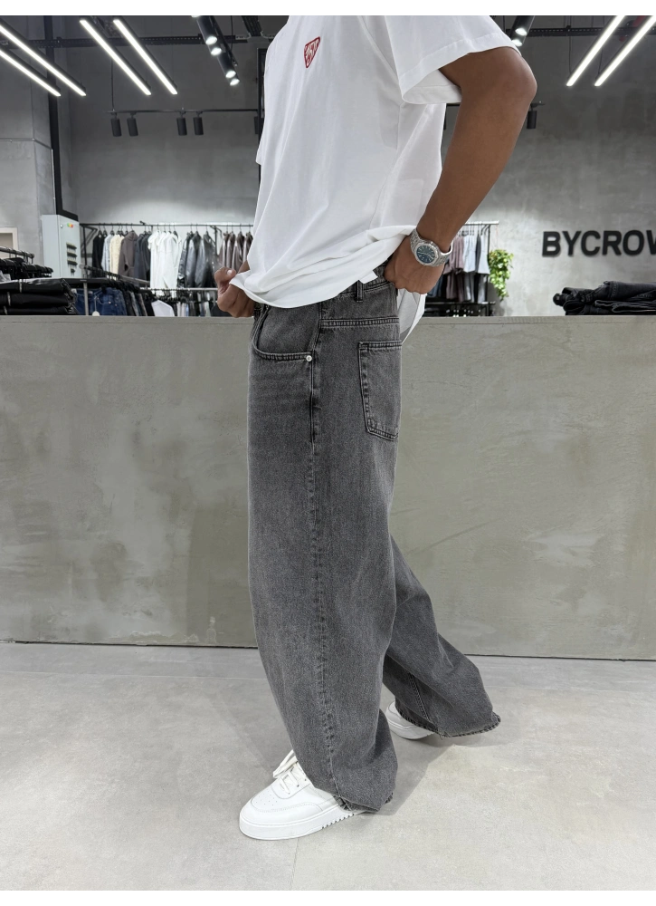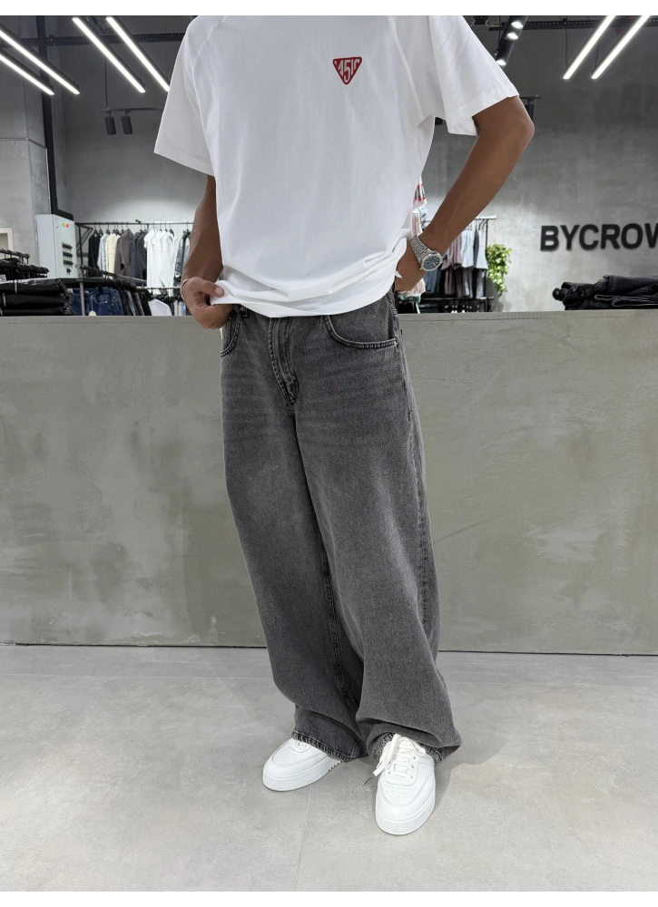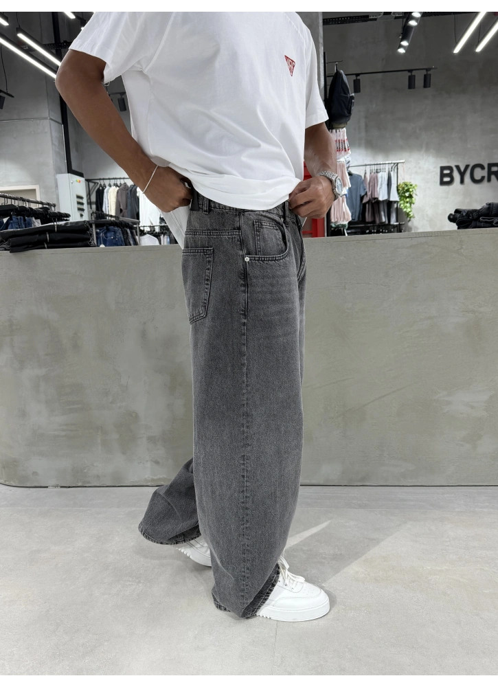 Antrasit Eskitme Denim Süper Baggy
