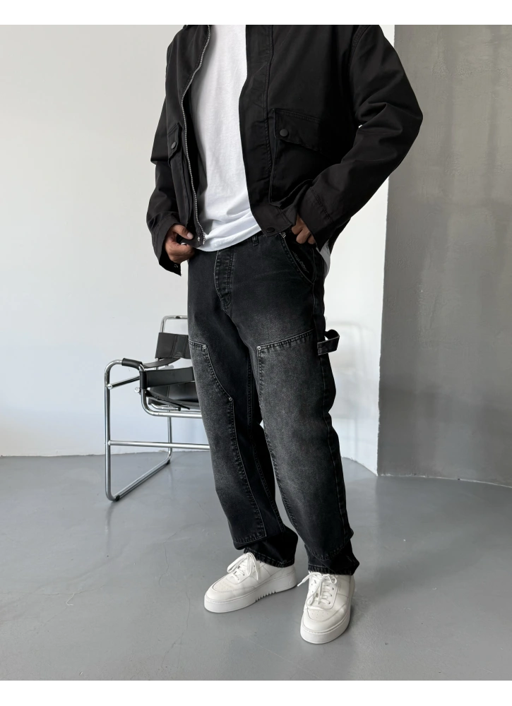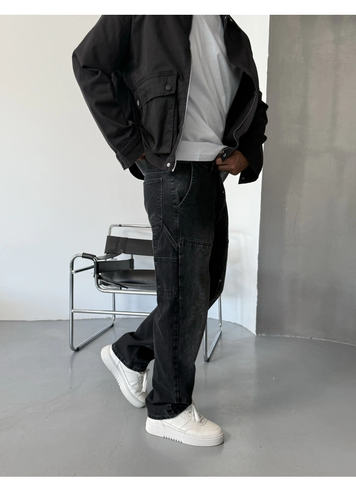 Modern parçalı tasarımıyla dikkat çeken bu baggy jean, antrasit tonunun cool duruşuyla stilinize farklı bir hava katıyor. Rahat kalıbı sayesinde gün boyu konfor sağlarken, sokak modasının iddialı görünümünü yansıtıyor.