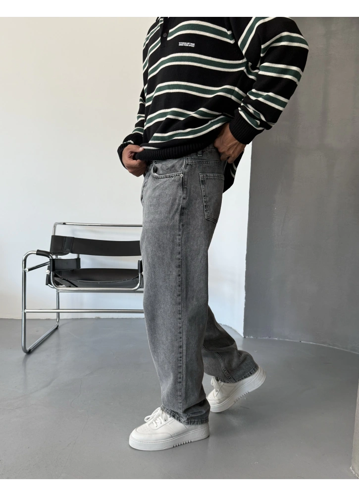 Modern kesimi ve premium kalitesiyle öne çıkan antrasit baggy jean, rahat regular fit tasarımı sayesinde gün boyu konfor sağlar. Yumuşak ve dayanıklı kumaşı ile hem şık hem de rahat bir görünüm sunar. Sneaker veya botlarla kombinleyerek gündelik stilinizi tamamlayabilirsiniz.
