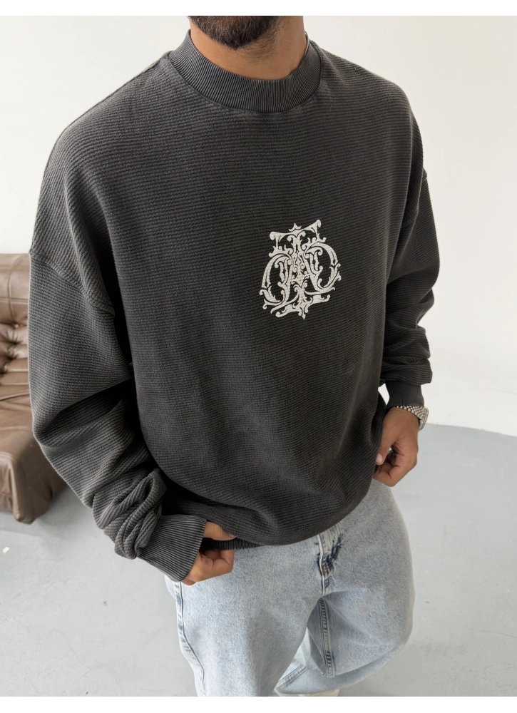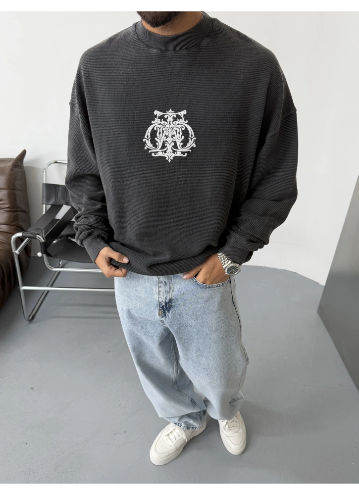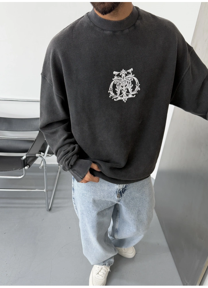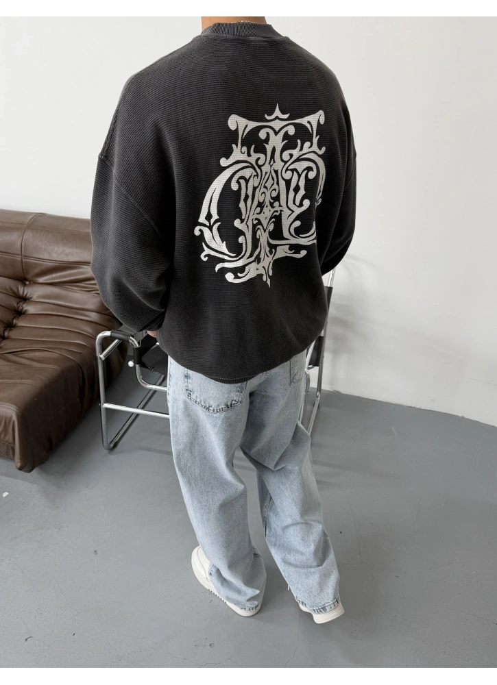 Antrasit Yıkamalı Baskılı Oversize Gofre Sweat Hakkında