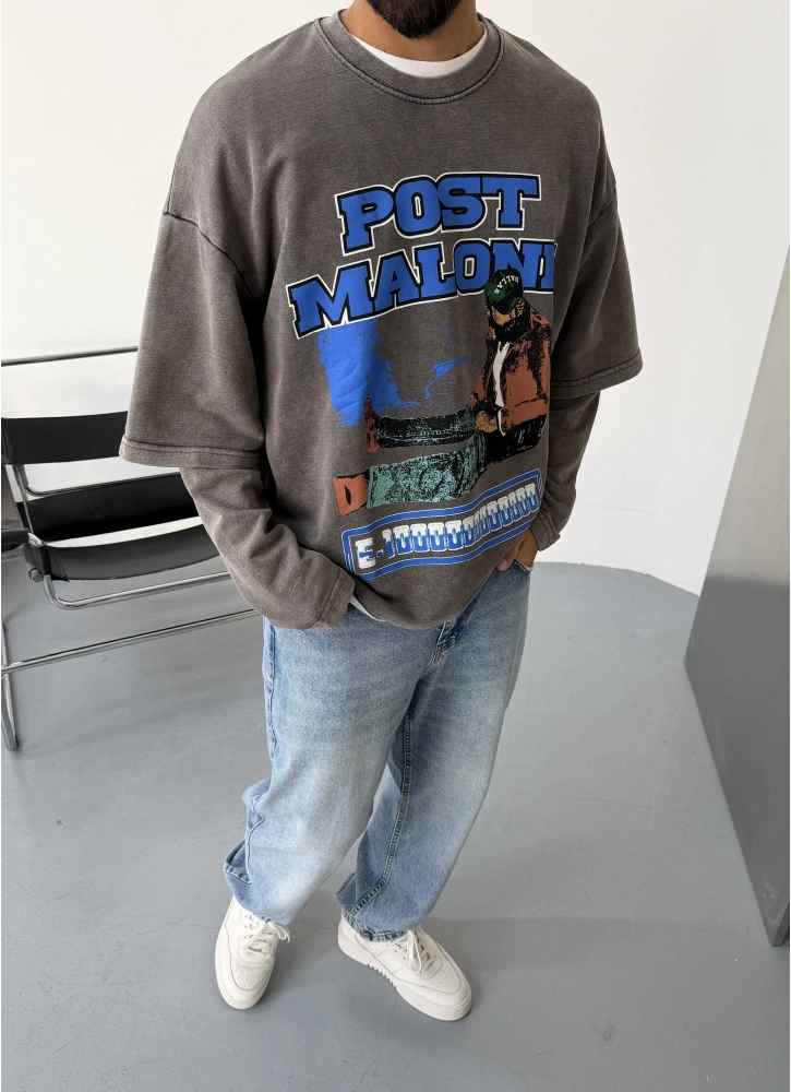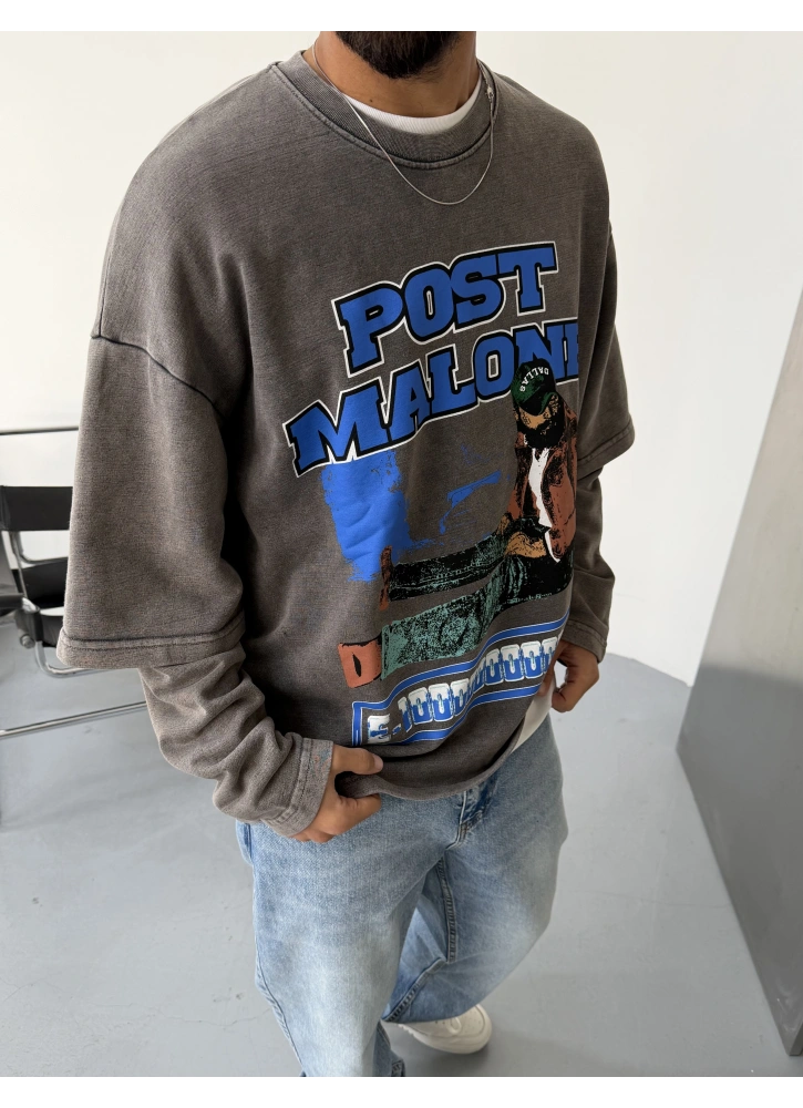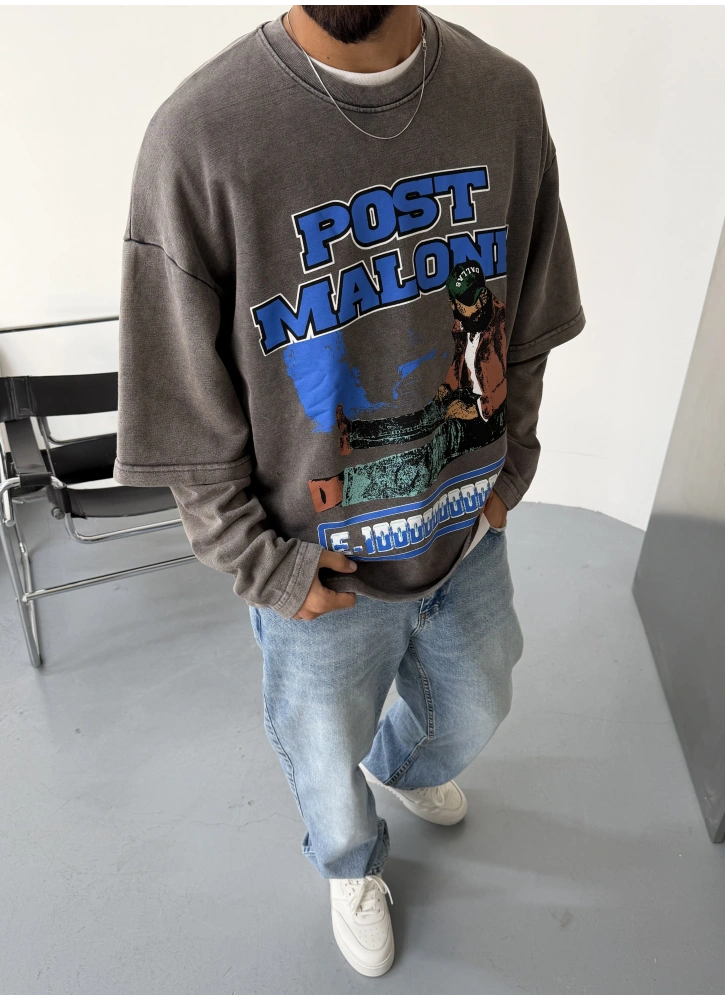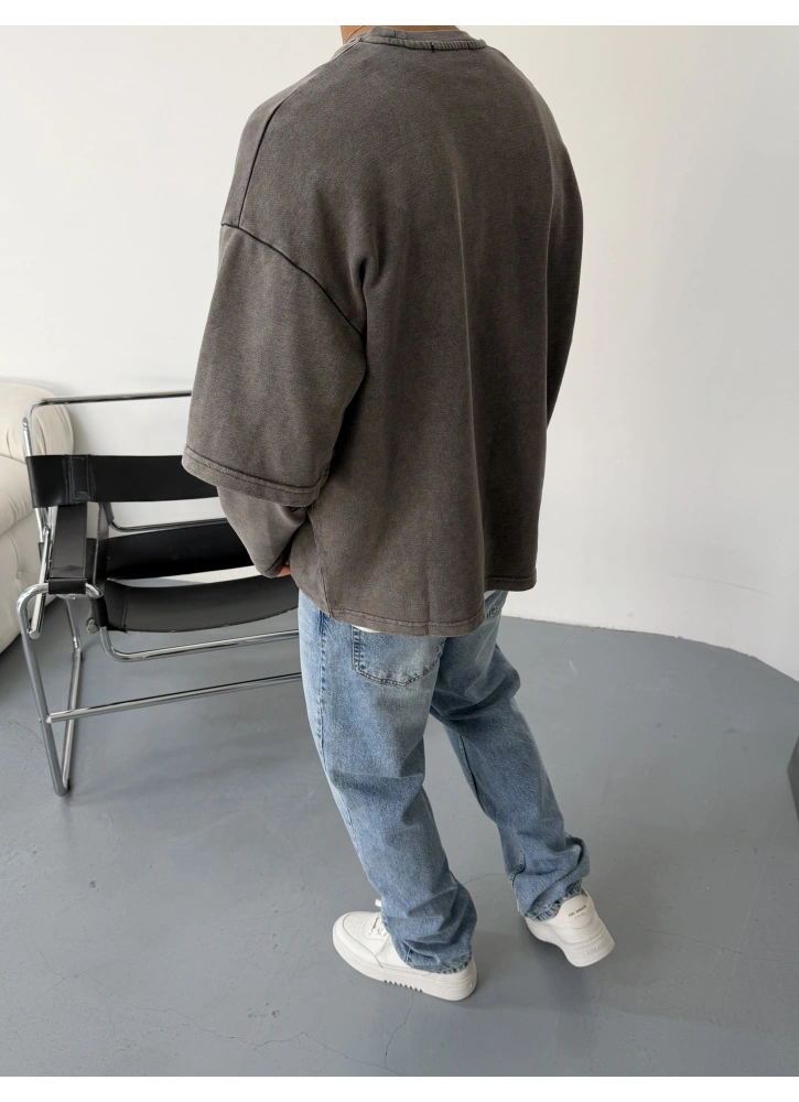 Antrasit Yıkamalı Baskılı Oversize Sweat Hakkında