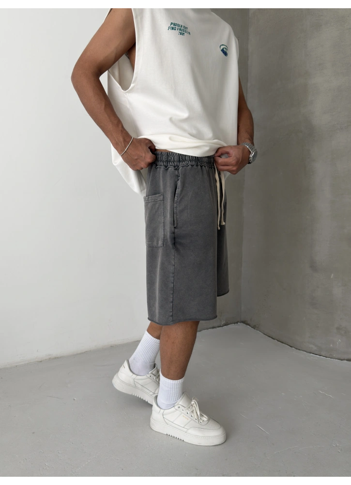 Siyah yıkamalı kumaşıyla öne çıkan bu bol kalıp şort, rahat kesimi sayesinde gün boyu konfor sunar. Modern ve sade tasarımıyla yaz kombinlerine cool ve stil sahibi bir hava katar.