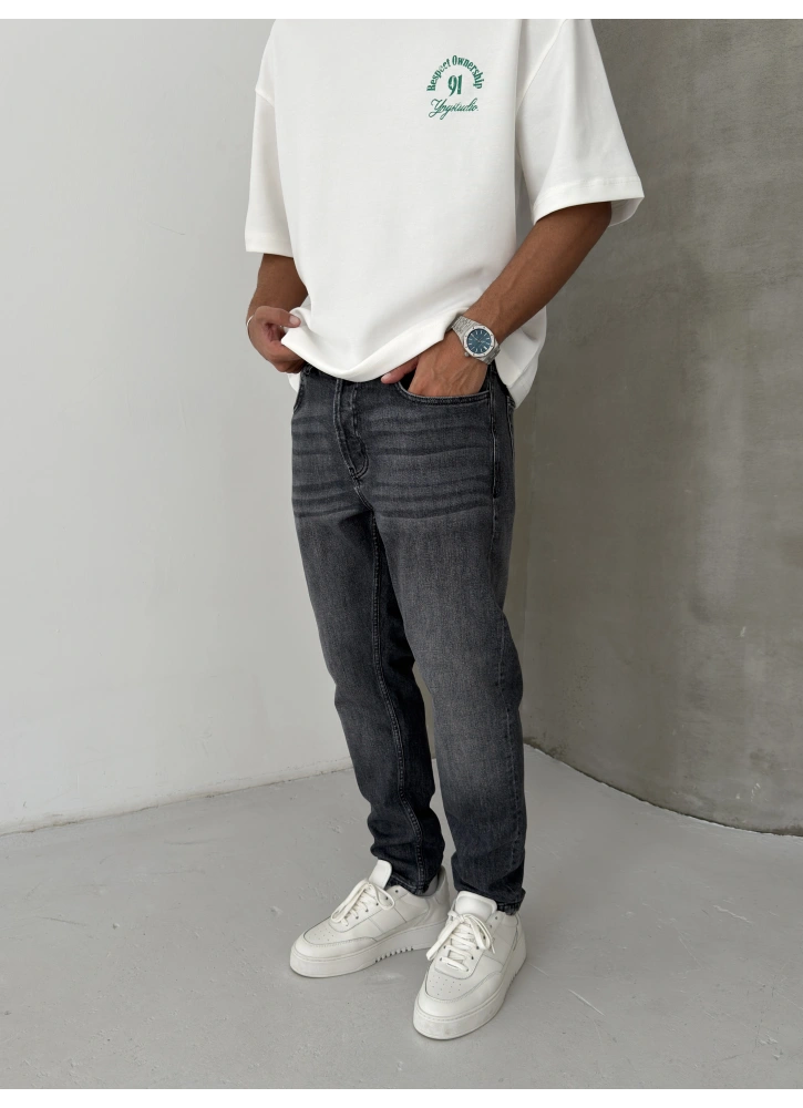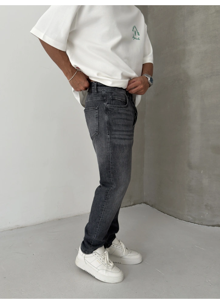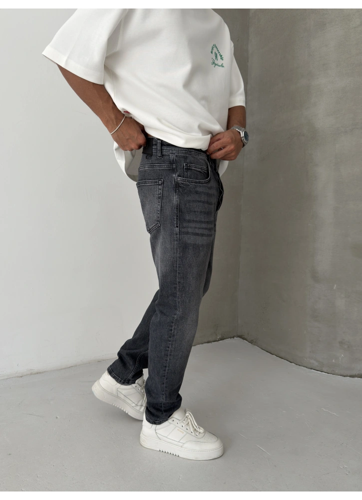 Antrasit Yıkamalı Effect Denim Boyfriend Jean