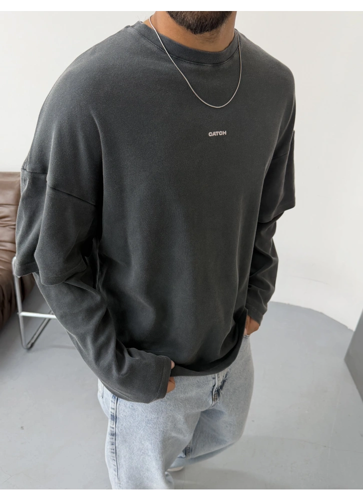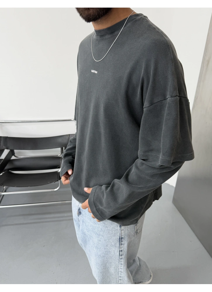 Antrasit Yıkamalı Kollu Oversize Sweat Hakkında