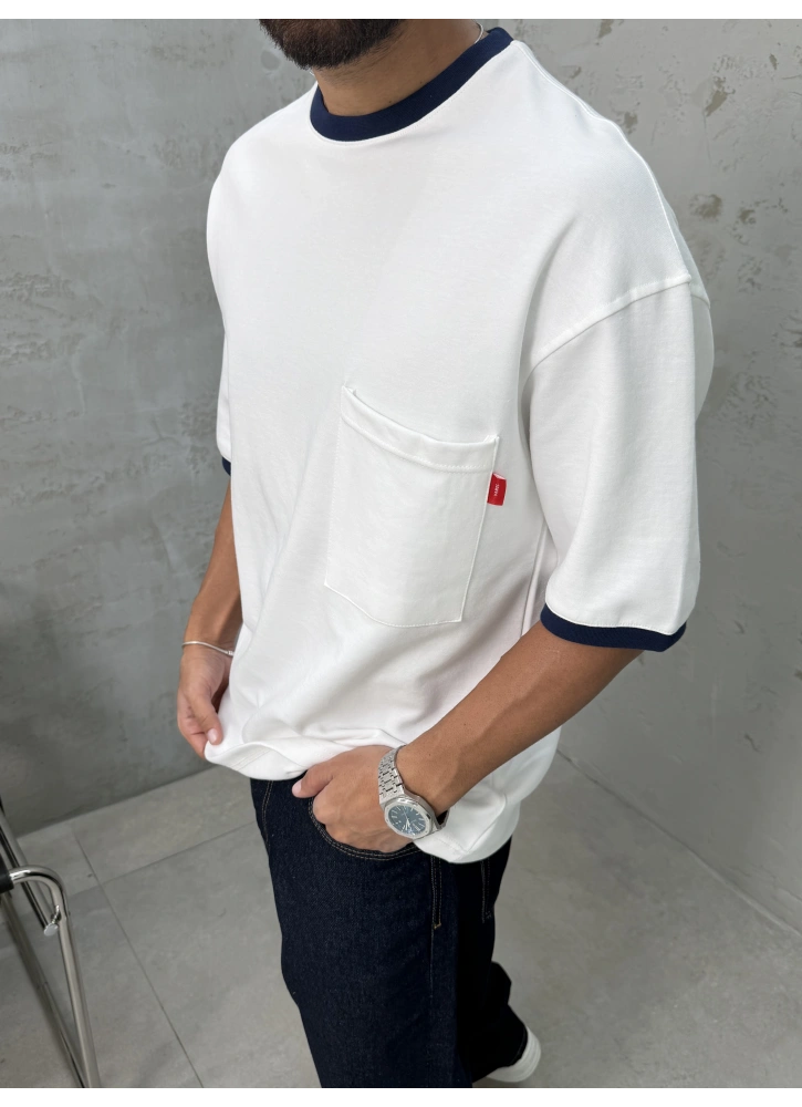 Beyaz Cep Detay Oversize T-shirt