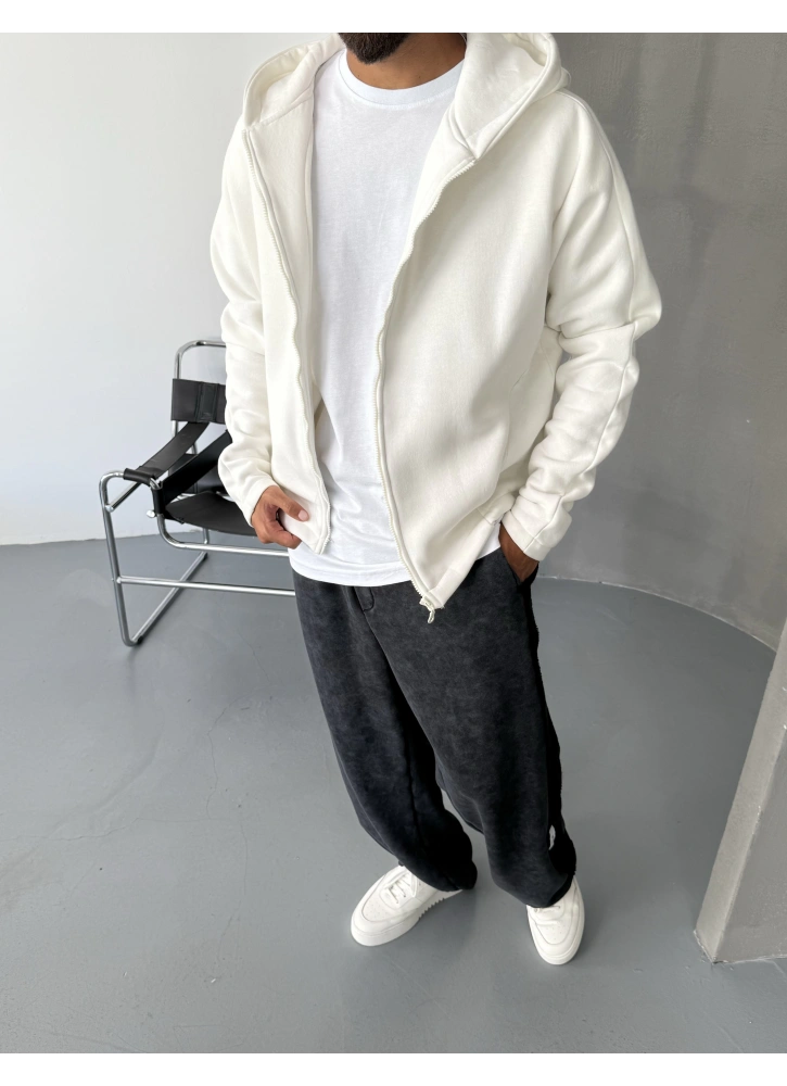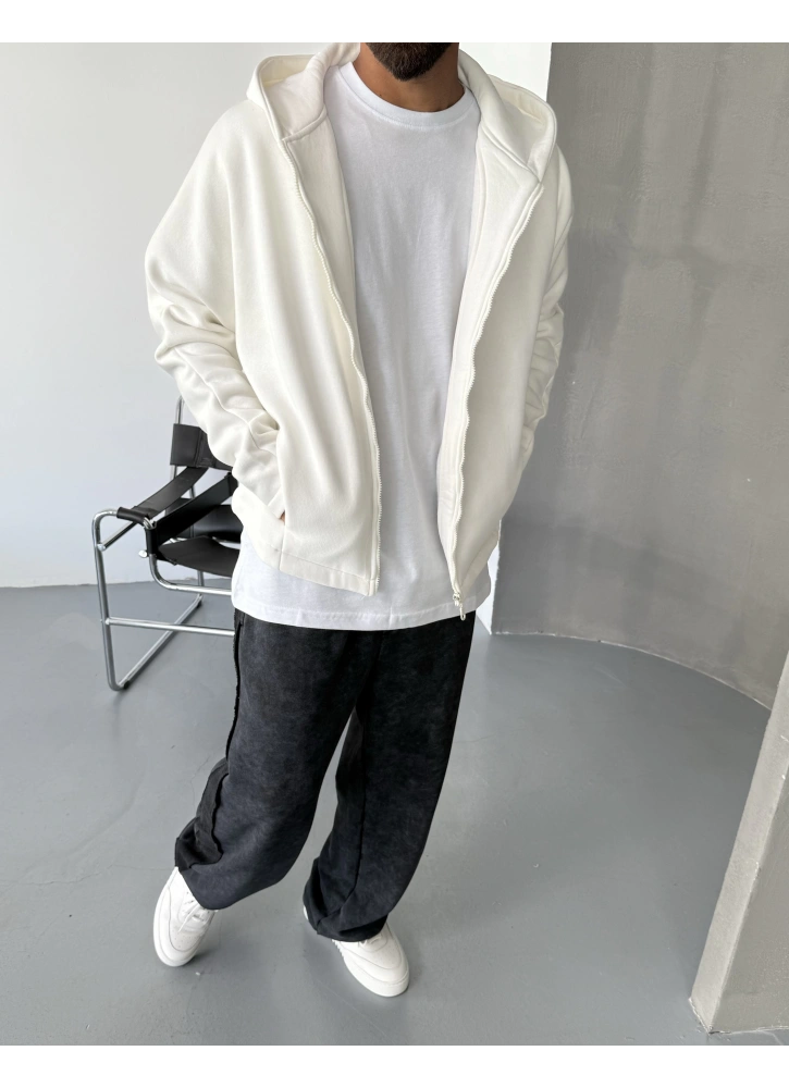 Günlük stilin rahatlığını ve şıklığını bir araya getiren bu beyaz oversize hırka, kapüşon detayıyla ekstra konfor sunar. Yumuşak ve kaliteli kumaşı, gün boyu rahat kullanım sağlar. Salaş kalıbı sayesinde tişört ve sweatlerle kolayca kombinlenebilir.