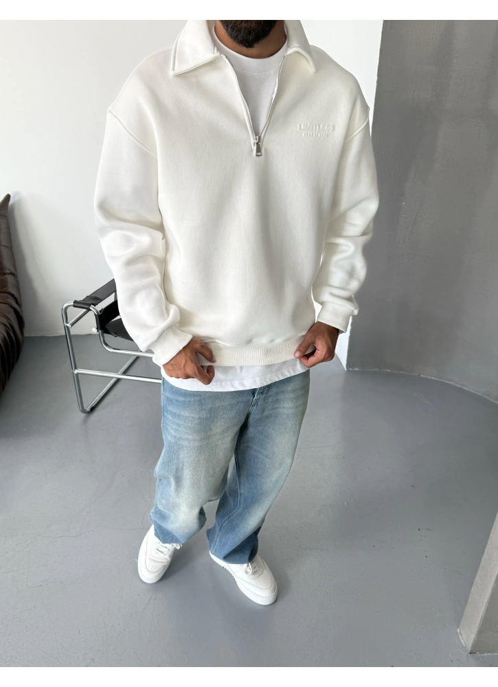 Beyaz Limitless Polo Yaka Sweatshirt Hakkında