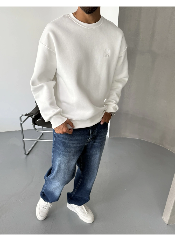 Beyaz Premium Bisiklet Yaka Sweatshirt Hakkında