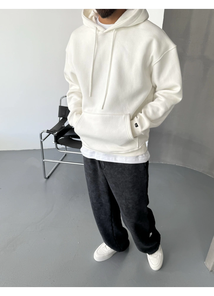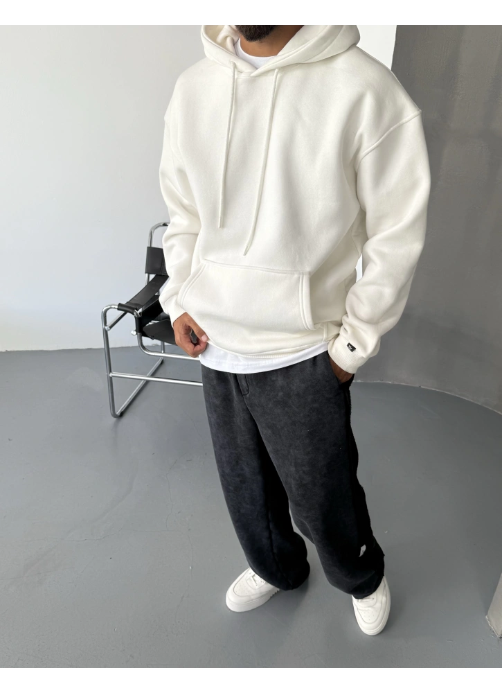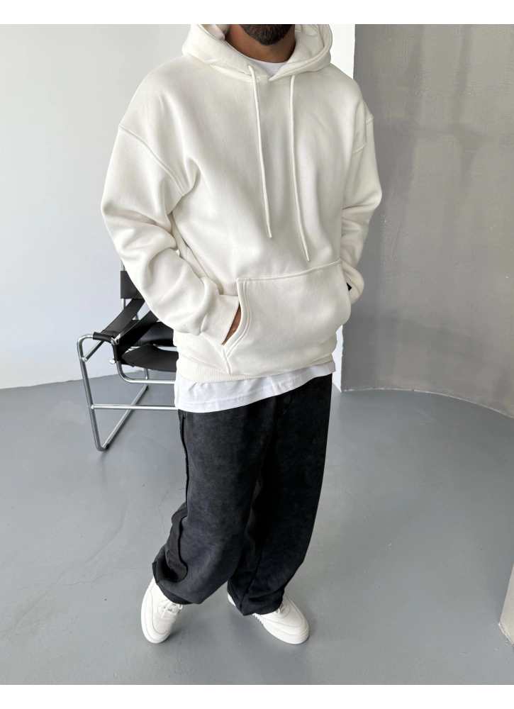 Beyaz Premium Oversize Basic Kapişonlu Sweatshirt Hakkında