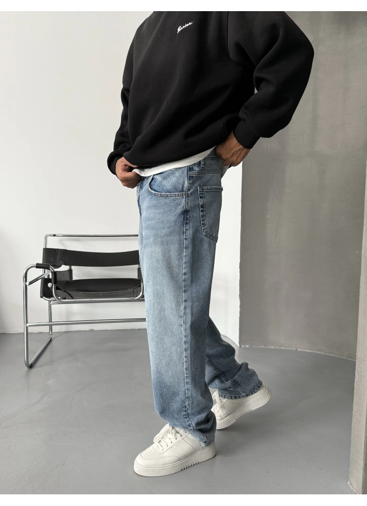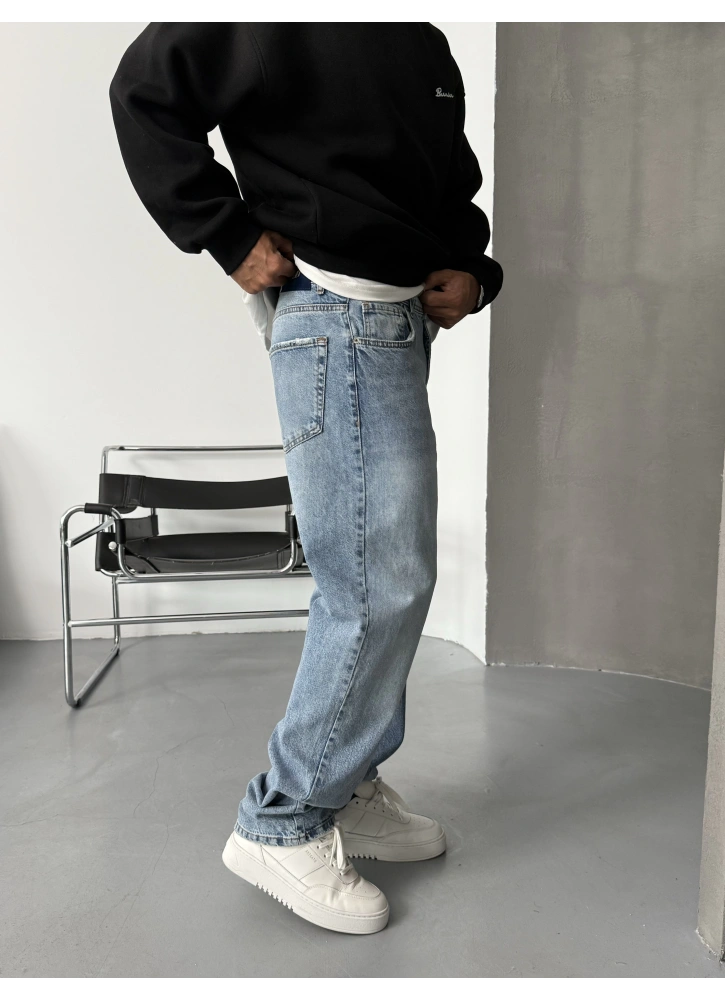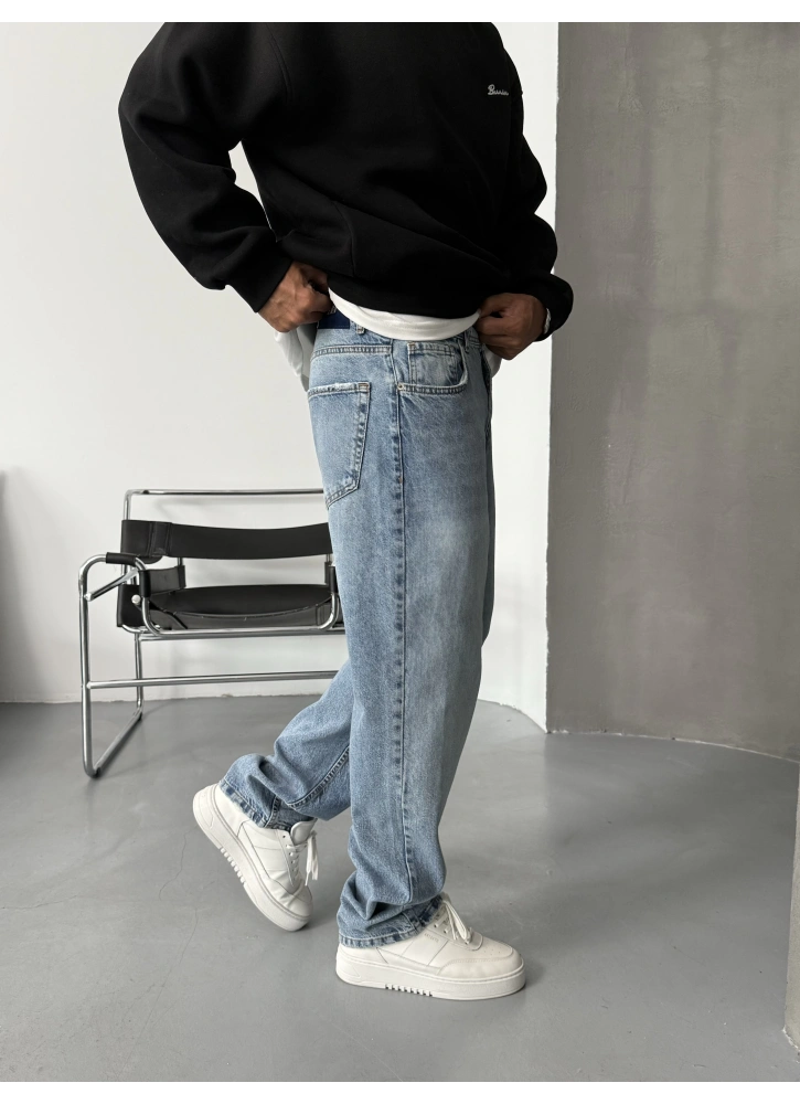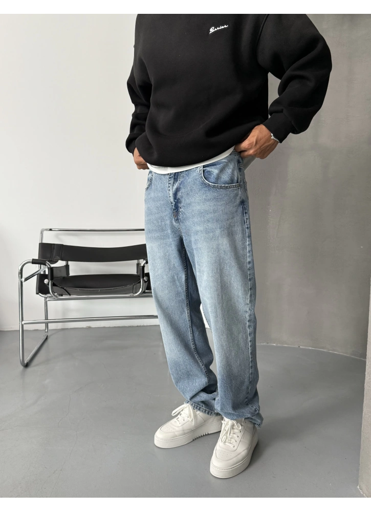 Buz Mavi Denim Baggy Jean, sezonun en cool tonlarından biriyle rahat kalıbı buluşturuyor.