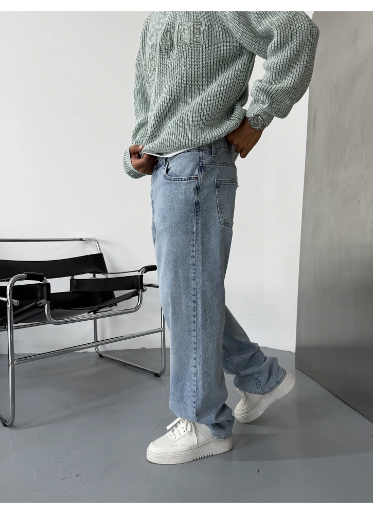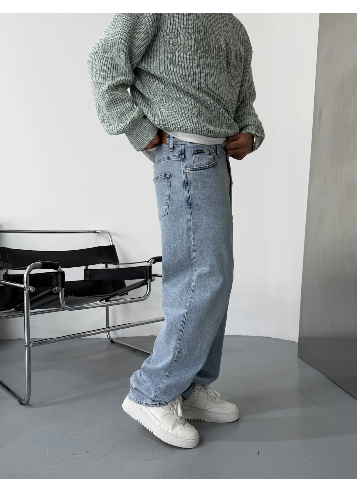 Buz Mavi Loose Fit Baggy Jean, bol ve rahat kesimiyle gün boyu konfor sunar. Modern baggy silueti sayesinde sokak stiline güçlü bir duruş kazandırır. Günlük kombinler için ideal bir parçadır.