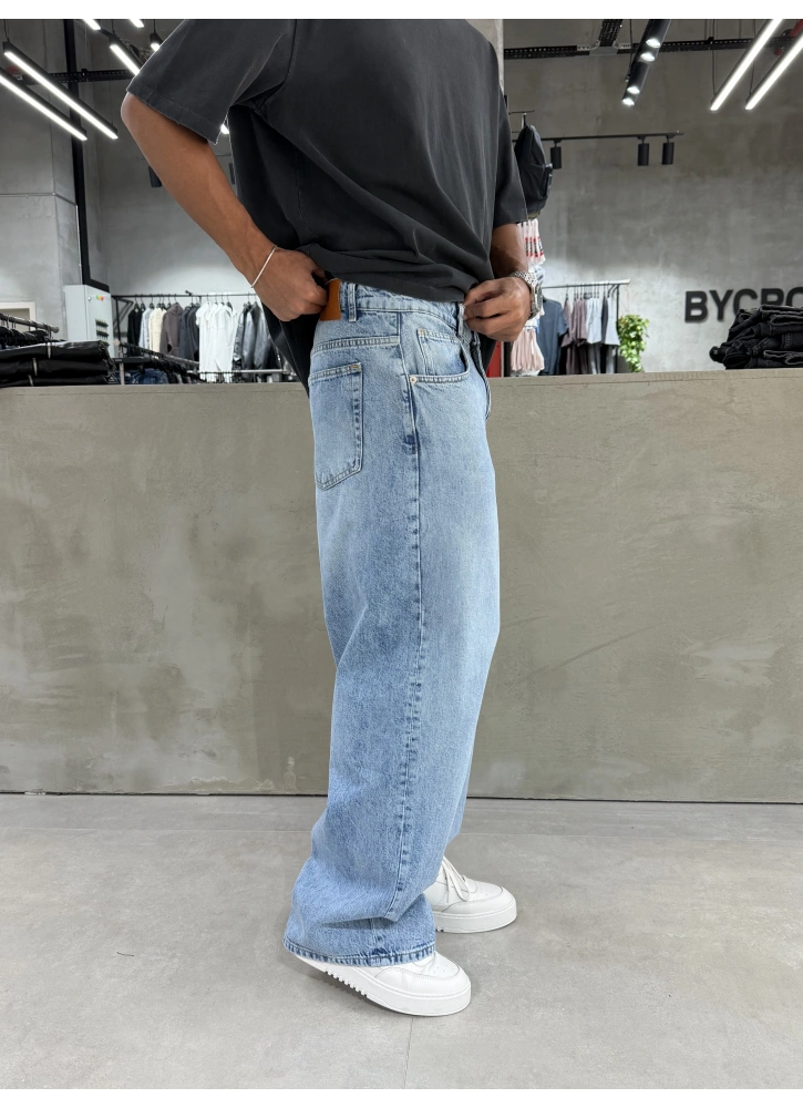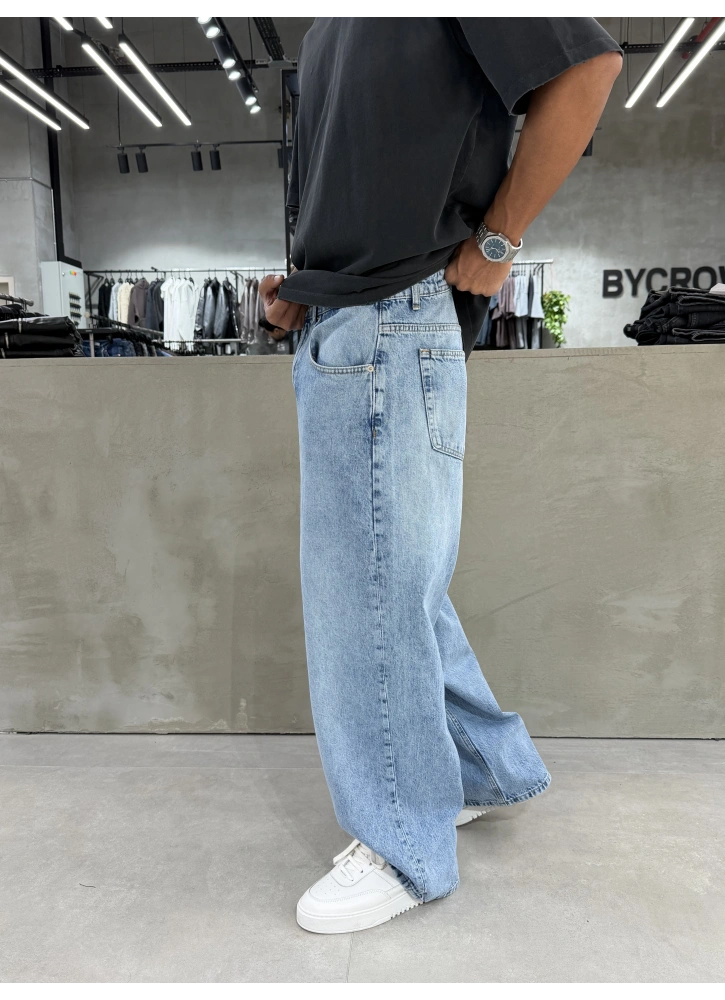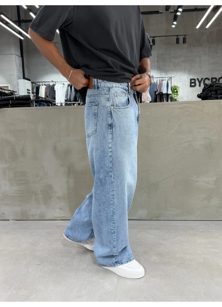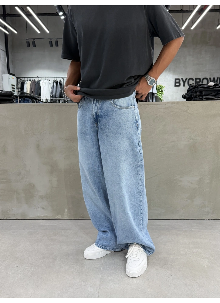 Buz Mavi Yıkamalı Denim Süper Baggy