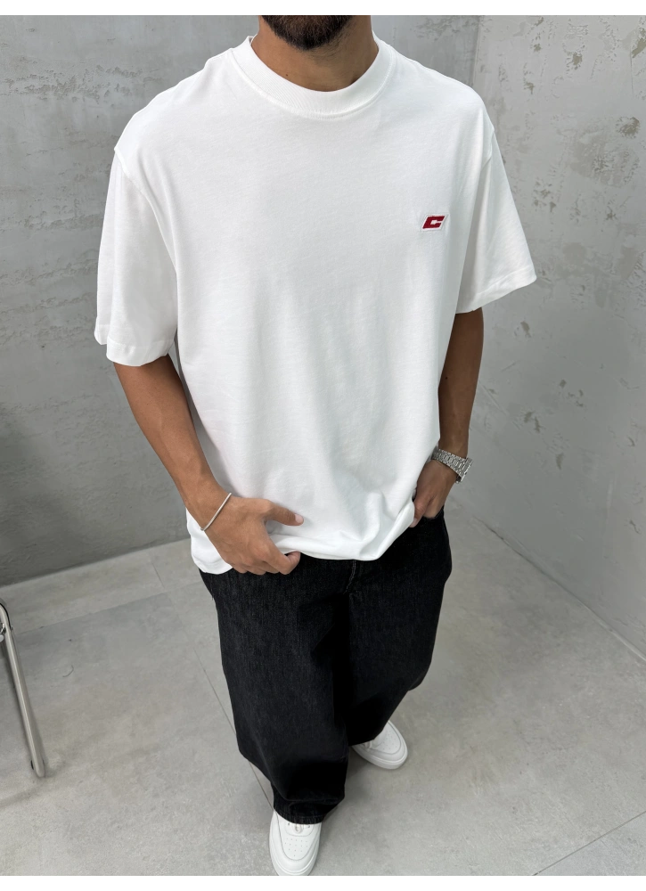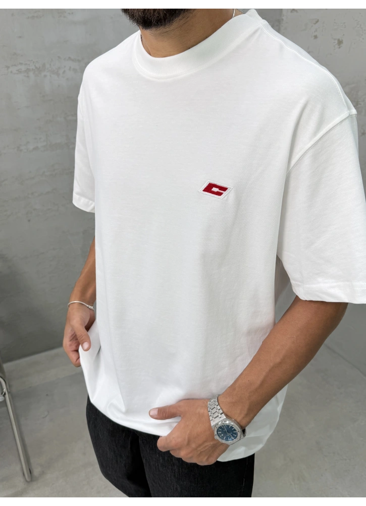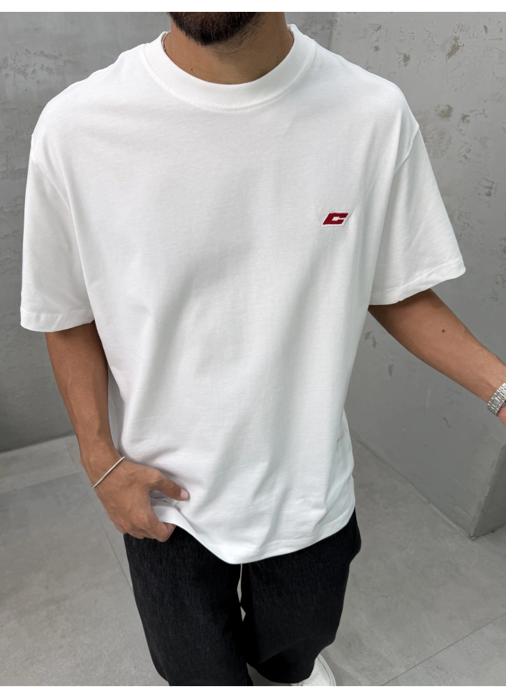 C Beyaz Minimal Baskı Oversize T-Shirt