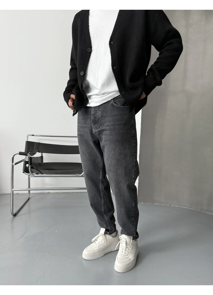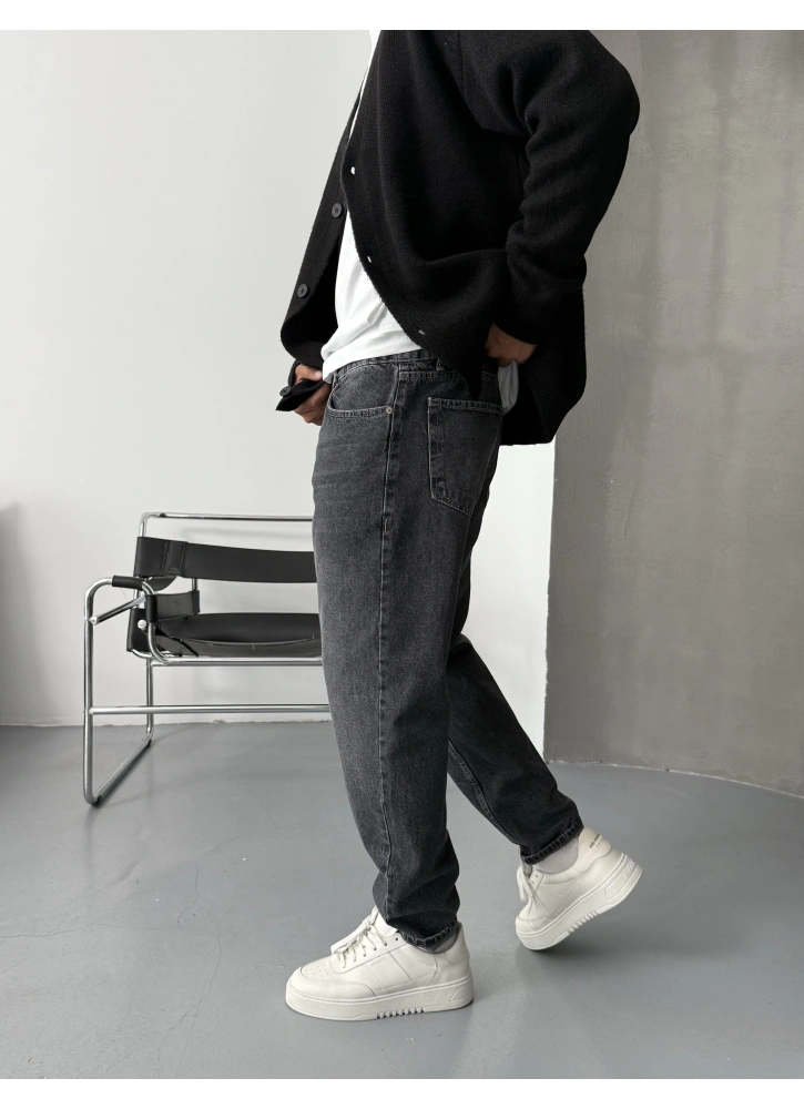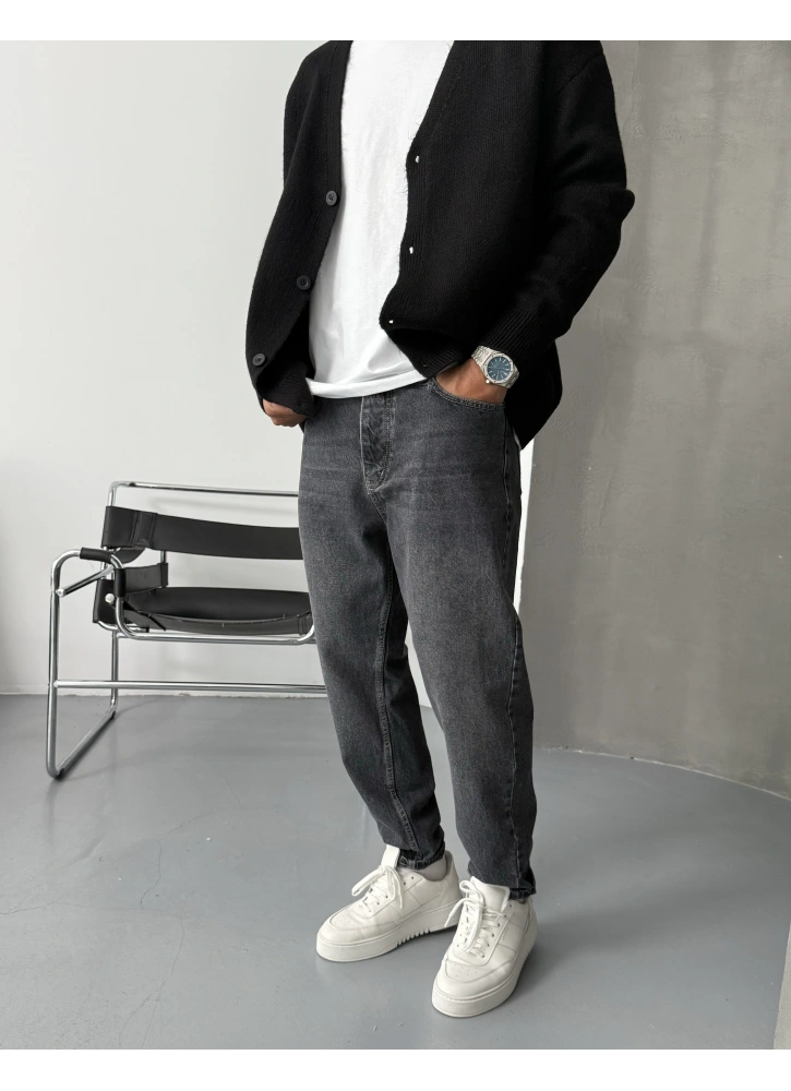 Klasik denim tarzına modern bir dokunuş: Eskitme Antrasit Denim Boyfriend Jean.