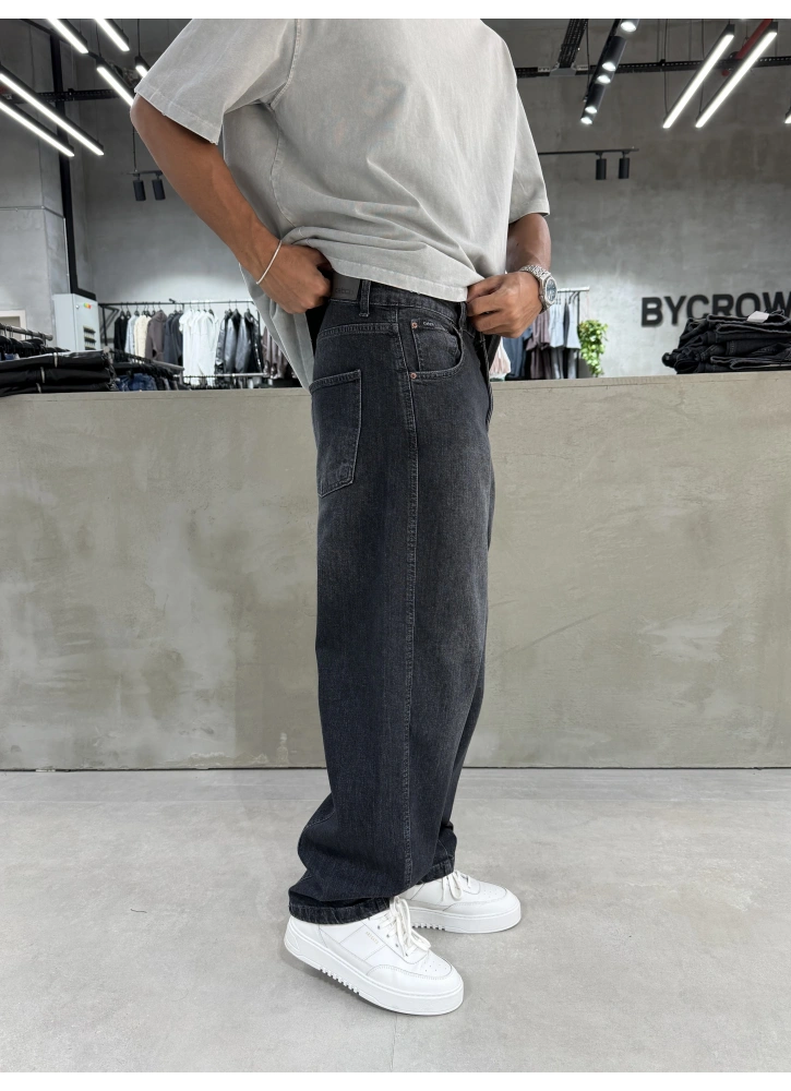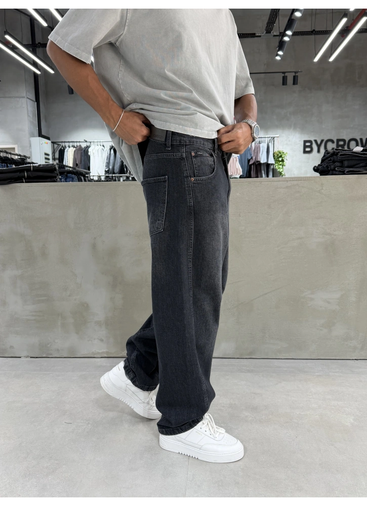 Eskitme Siyah Çizgi Detay Baggy Jean