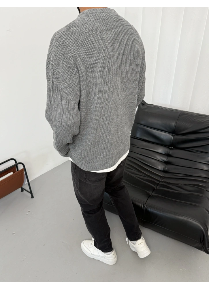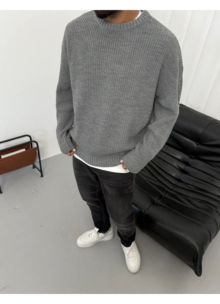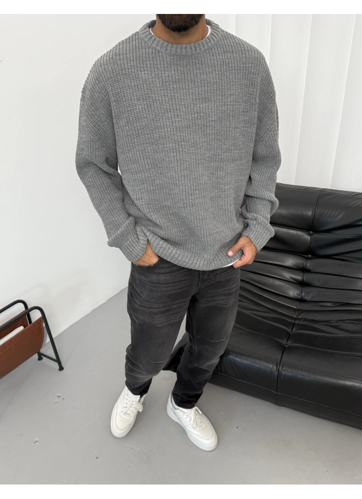 Gri Basic Örme Oversize Triko Kazak Hakkında