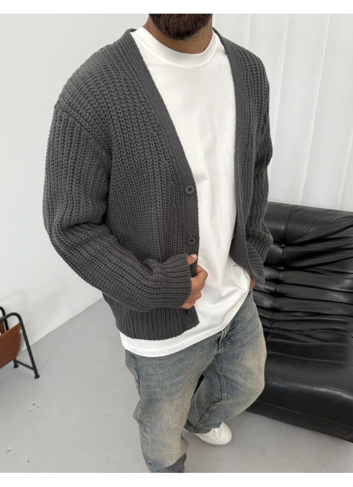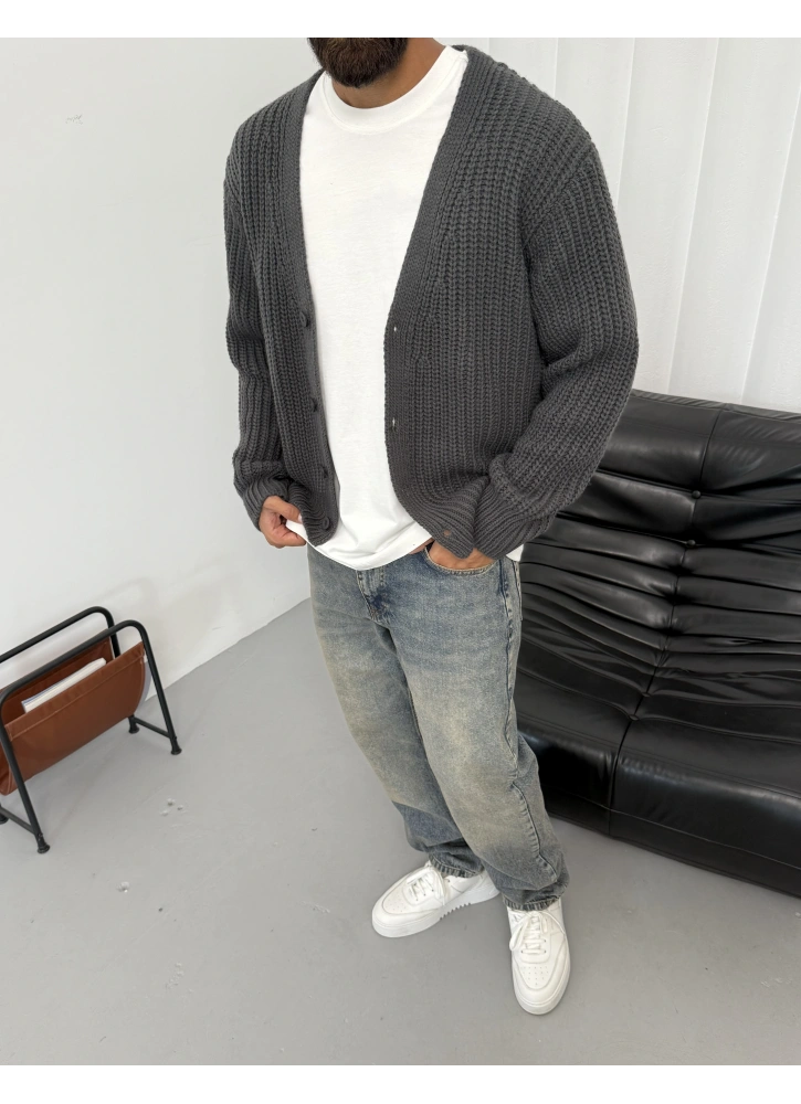 Gri örme dokusuyla modern ve minimal bir görünüm sunan oversize hırka, yumuşak triko yapısıyla gün boyu konfor sağlar. Rahat kesimi sayesinde hem basic hem de katmanlı kombinlerde kusursuz uyum yakalar. Serin havalarda sıcak tutan hafif yapısı, stiline effortless bir şıklık katar.