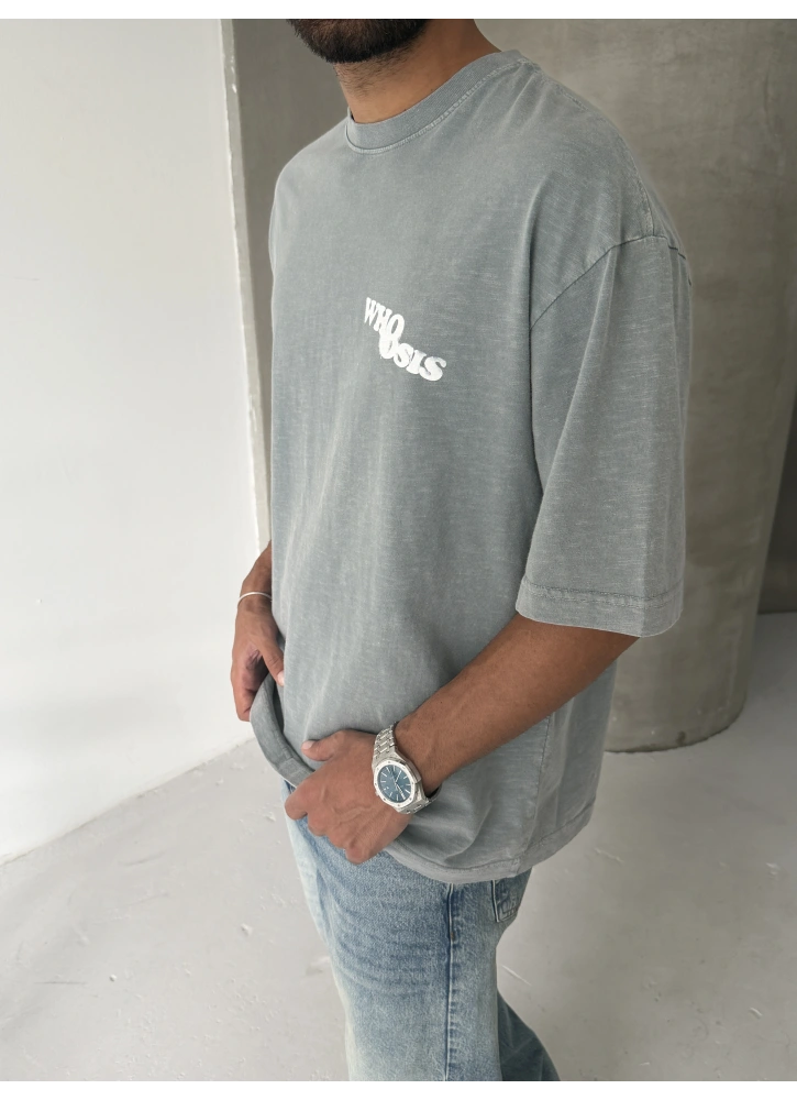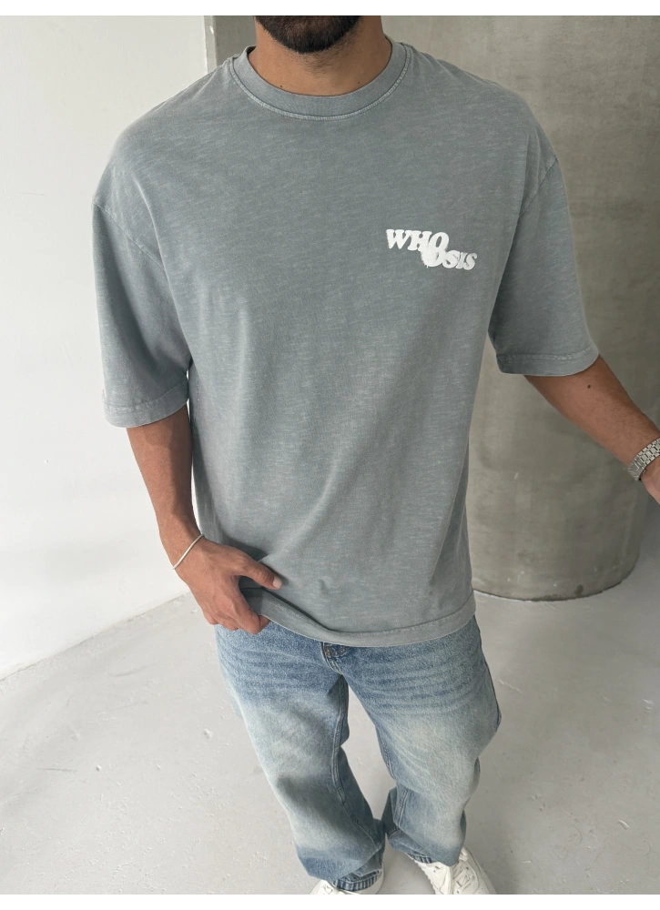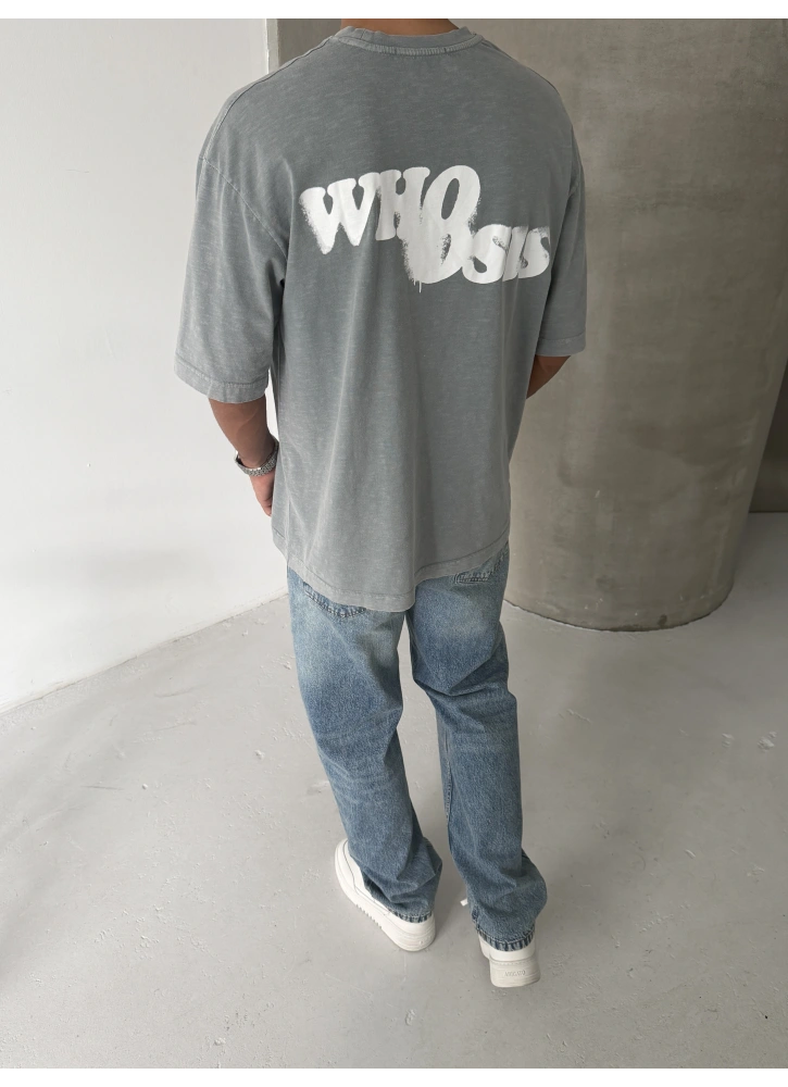 Gri Who Yıkamalı Oversize T-shirt