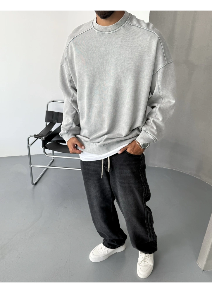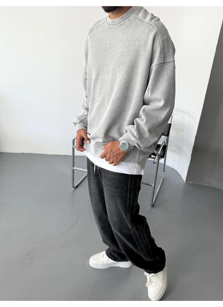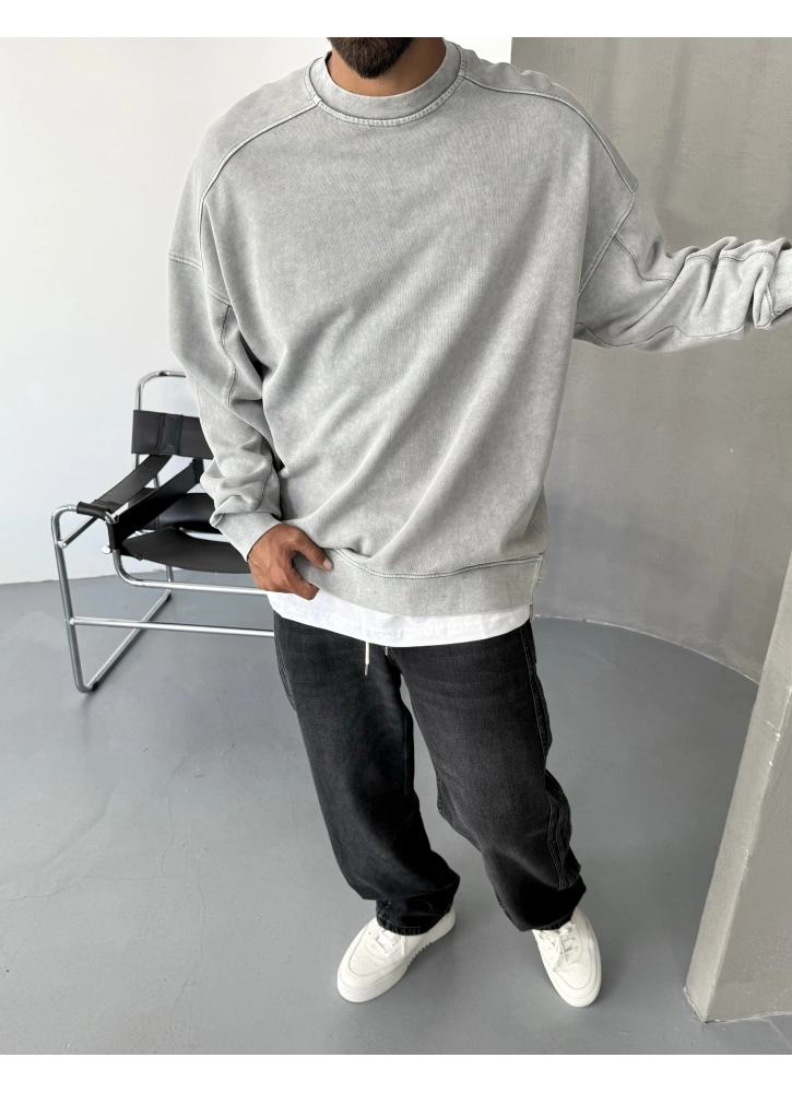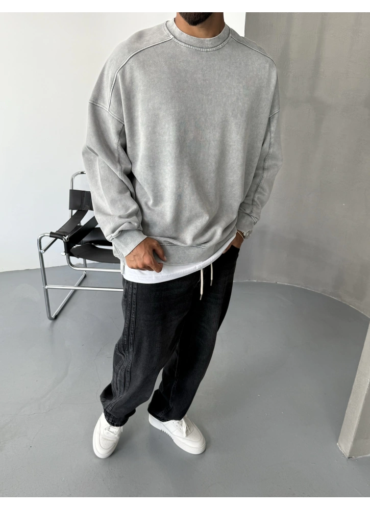 Gri Yıkamalı Premium Bisiklet Yaka Sweatshirt Hakkında