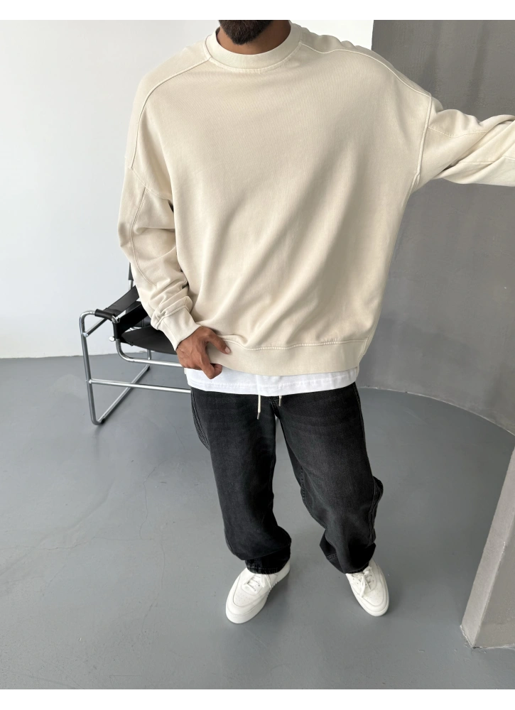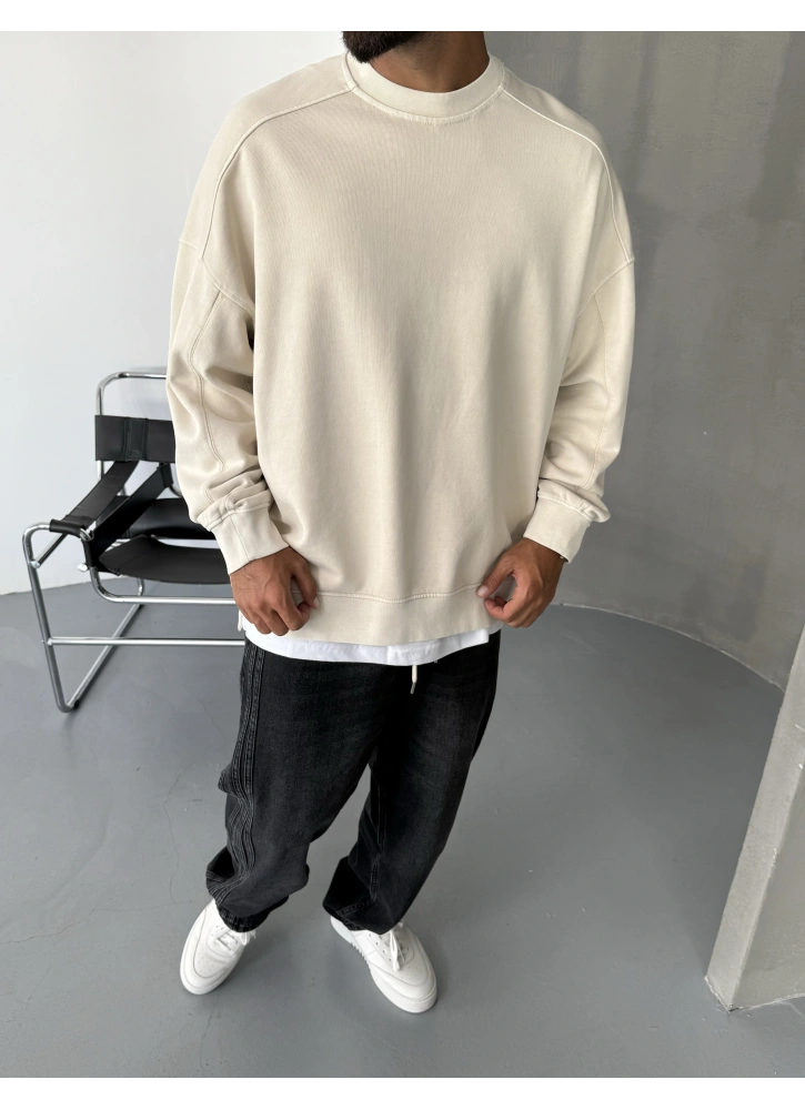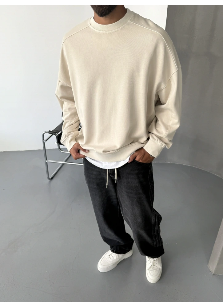Krem Yıkamalı Premium Bisiklet Yaka Sweatshirt Hakkında
