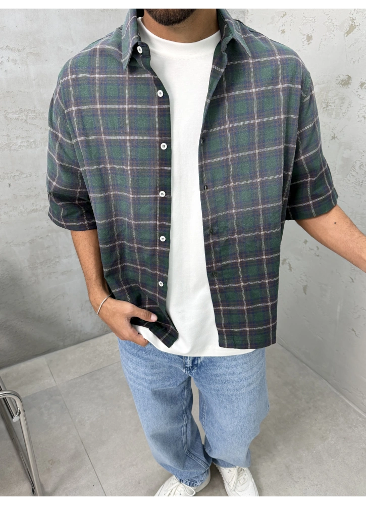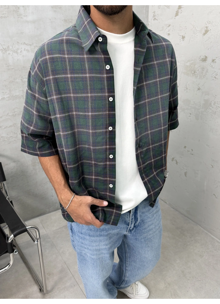 Haki tonları ve kontrast detaylarıyla dikkat çeken bu kısa kollu gömlek, modern kesimiyle hem rahat hem de stil sahibi bir görünüm sunar. Hafif yapısı sayesinde gün boyu konfor sağlarken, özgün tasarımıyla kombinlerine dinamik bir dokunuş katar.