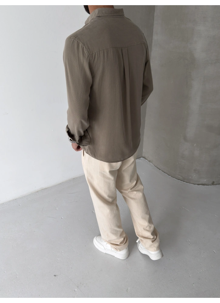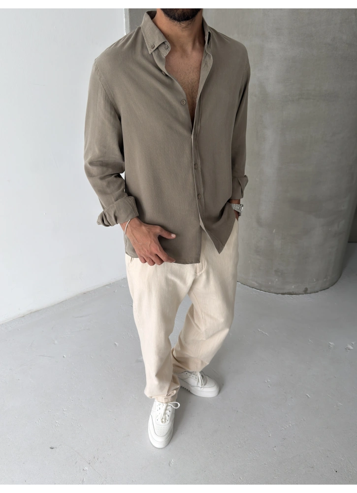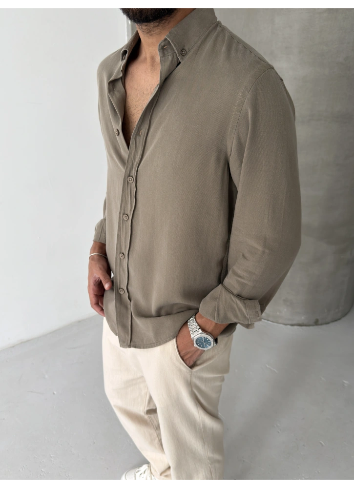 Haki %100 Tensel Kumaş Gömlek