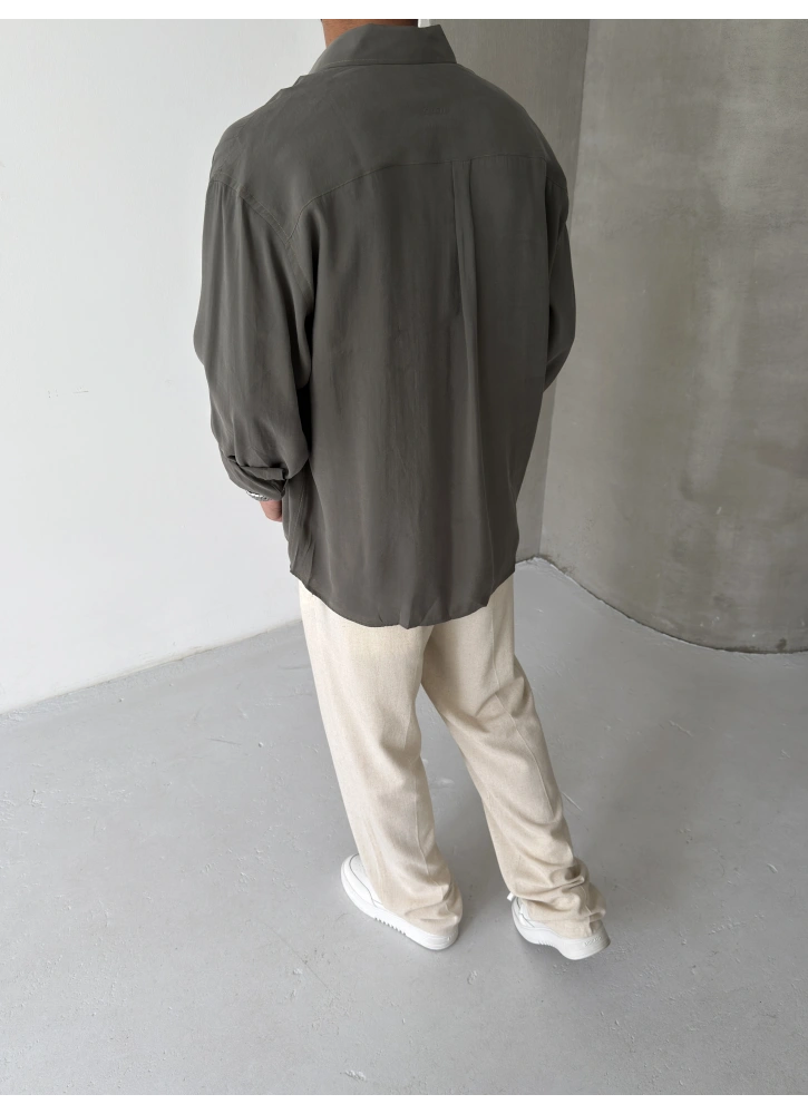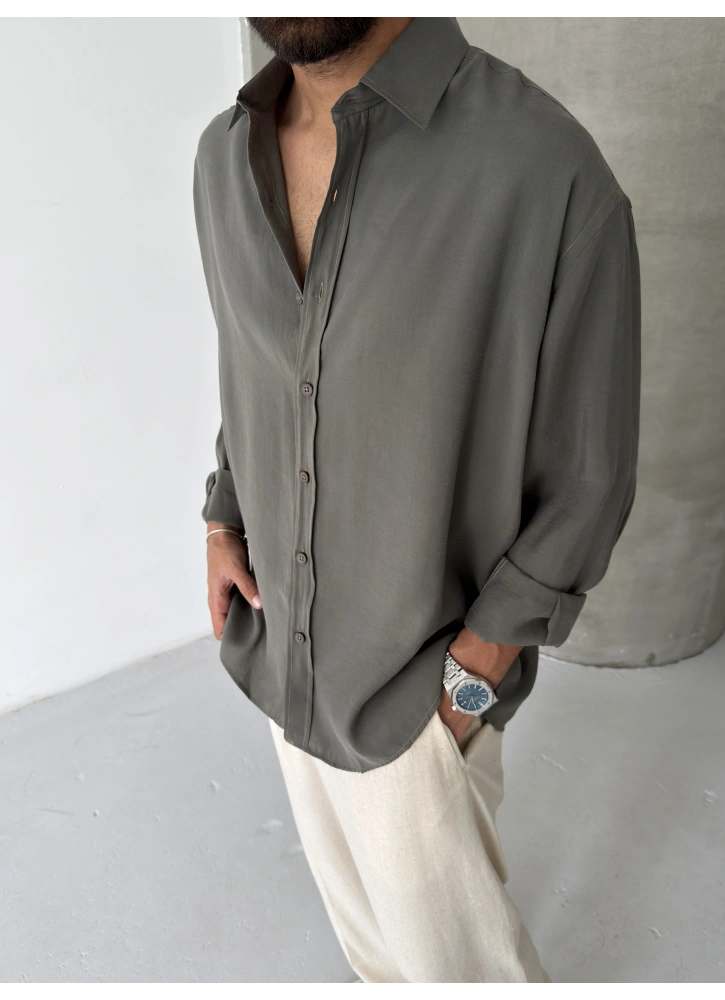 Haki Premium Modal Kumaş Oversize Gömlek
