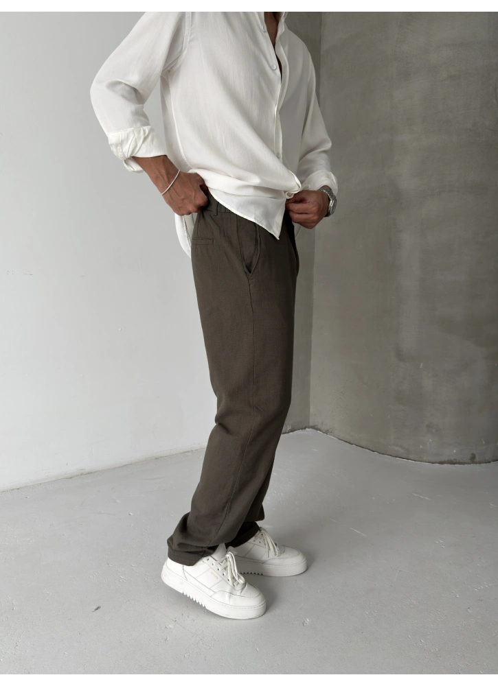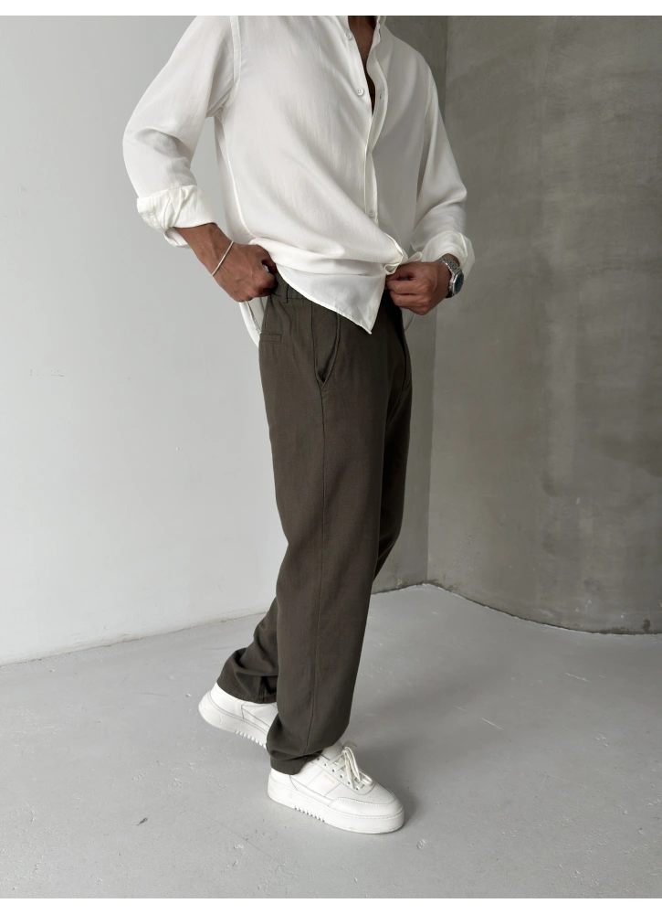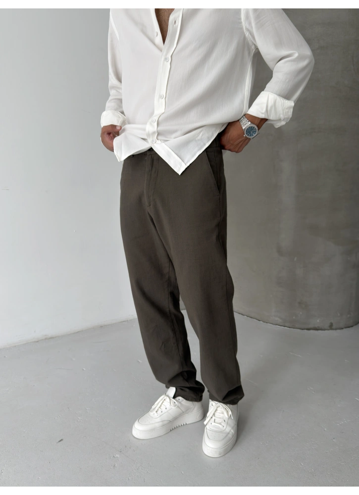 Keten kumaşıyla hafif ve nefes alabilen yapıya sahip bu baggy, regular kalıbıyla rahat ve dengeli bir kullanım sunar. Haki rengi ve doğal tasarımıyla yaz kombinlerine modern, ferah ve stil sahibi bir hava katar.