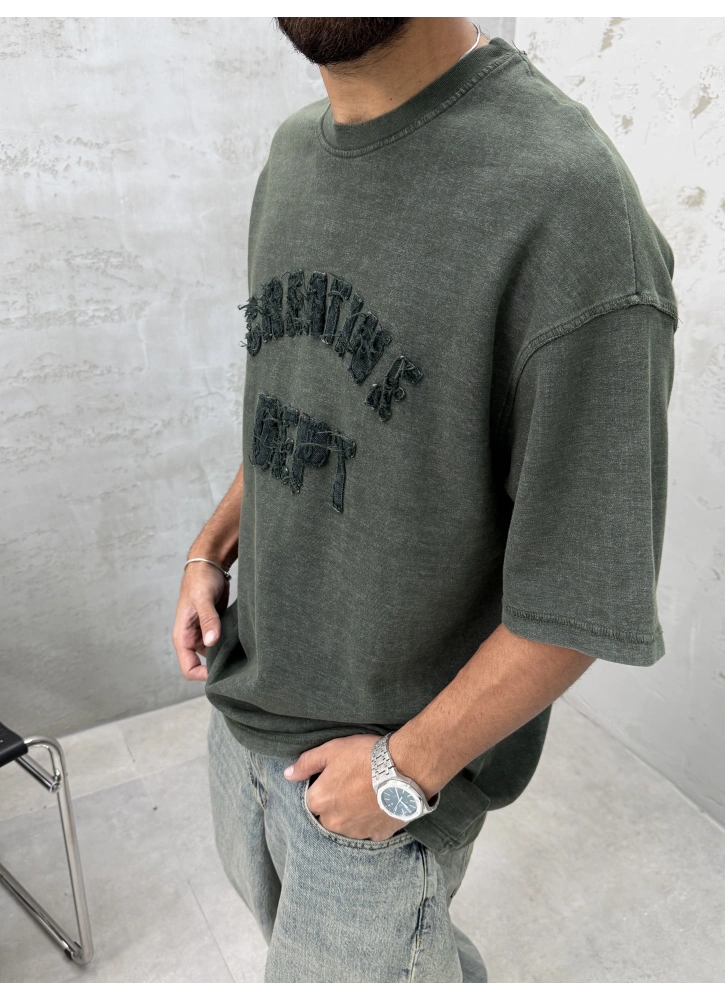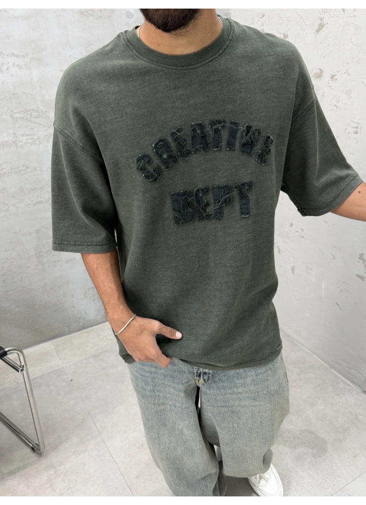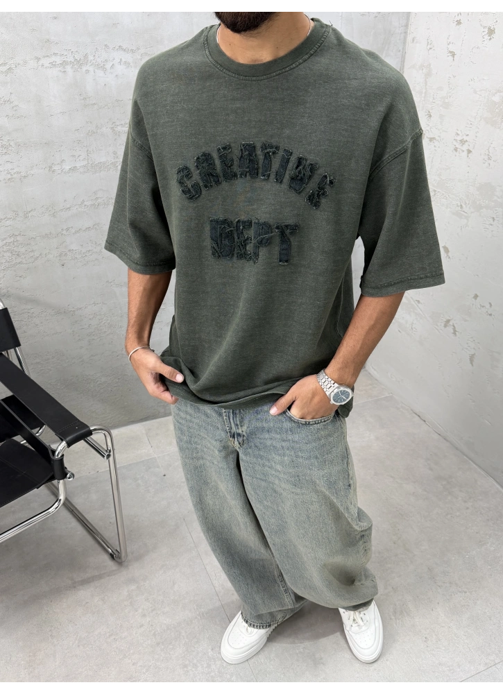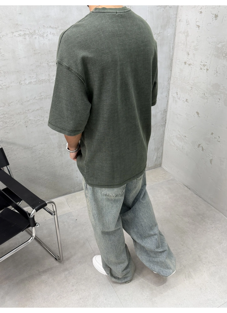 Haki Yıkamalı Denim Kabartmalı Oversize T-Shirt Hakkında