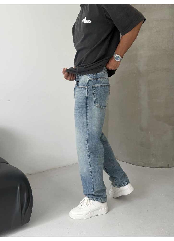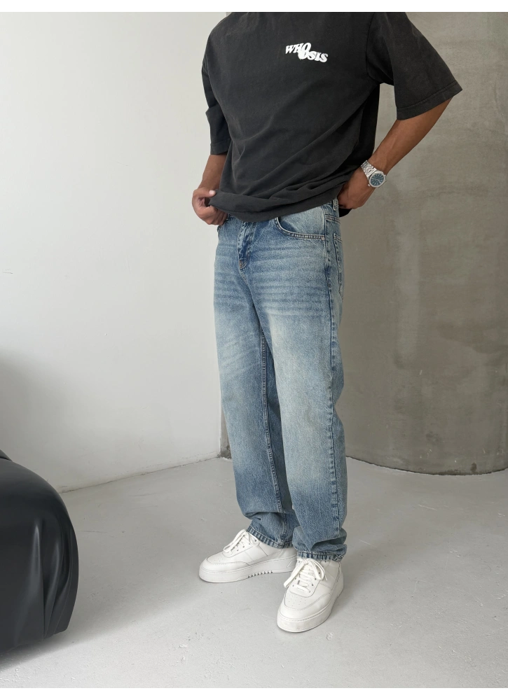Sokak stilinin en net hali. Ice ton mavi eskitme yıkamasıyla dikkat çeken bu baggy jean, bol kalıp yapısıyla maksimum rahatlık ve güçlü bir duruş sunar.