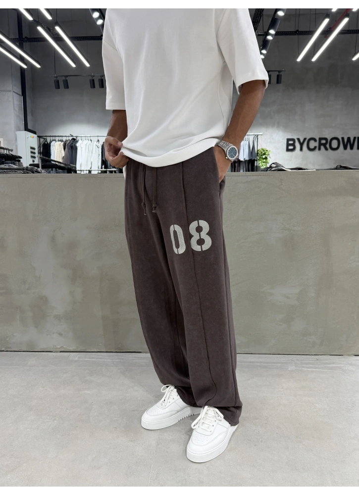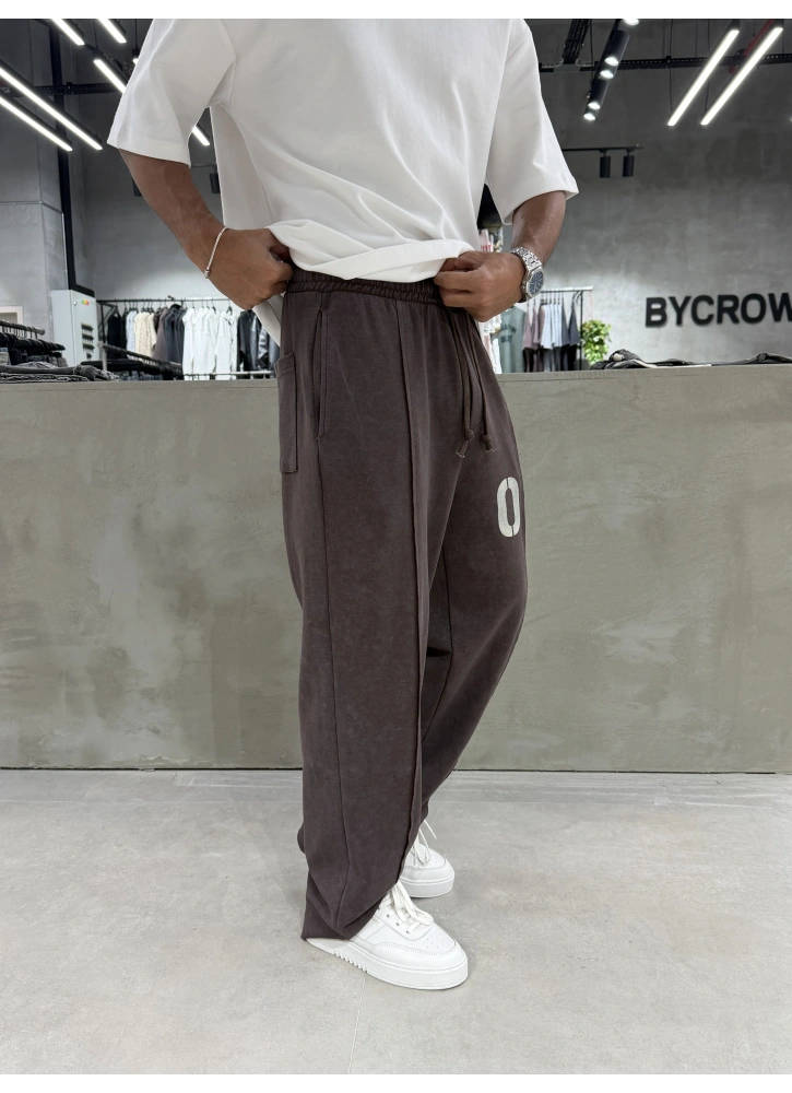 Kahve 08 Yıkamalı Bol Kalıp Baggy Eşofman