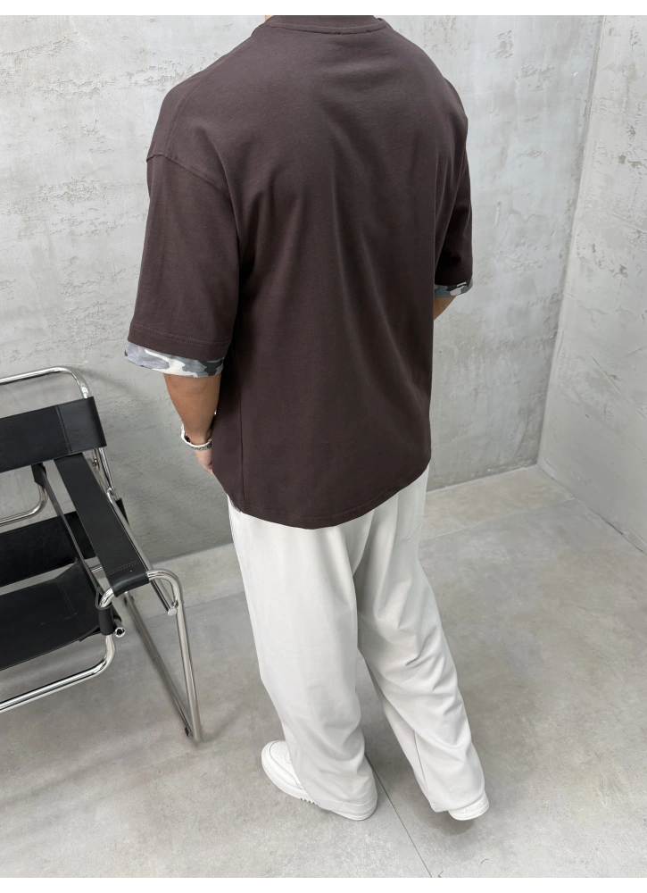 Kahve Barstate Oversize Kol Detay T-Shirt
