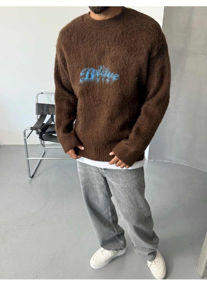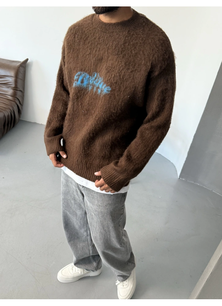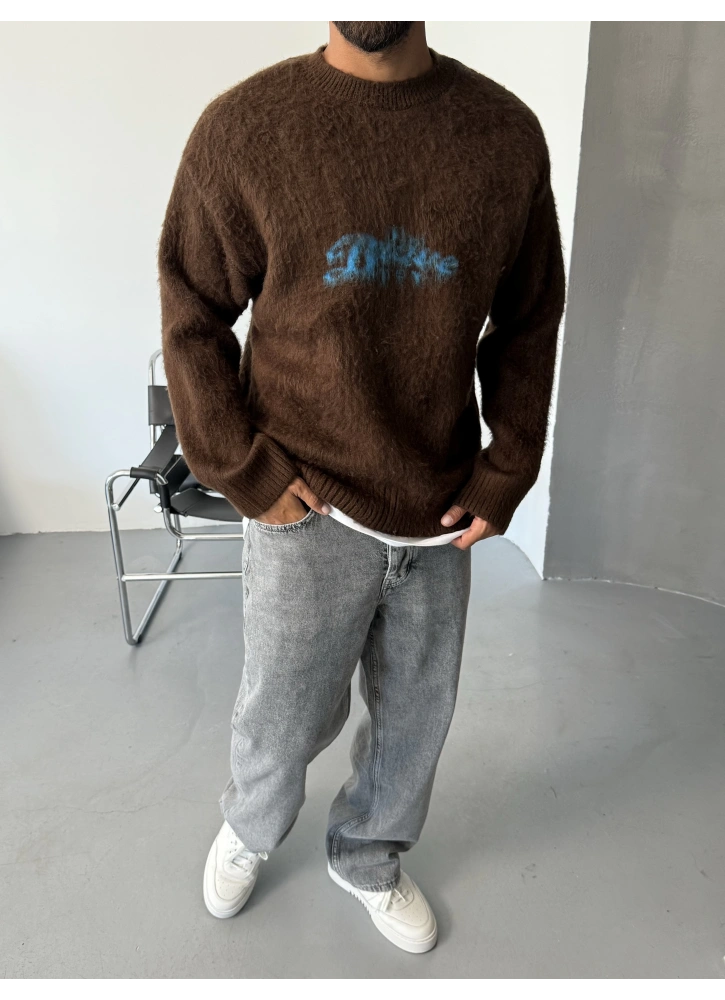 Kahve Baskılı Oversize Triko Kazak Hakkında