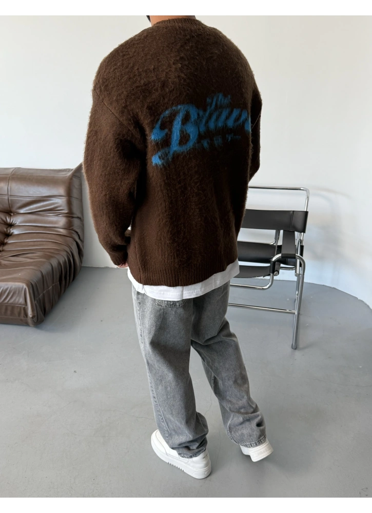 Kahve Baskılı Oversize Triko Kazak – Ürün Açıklaması