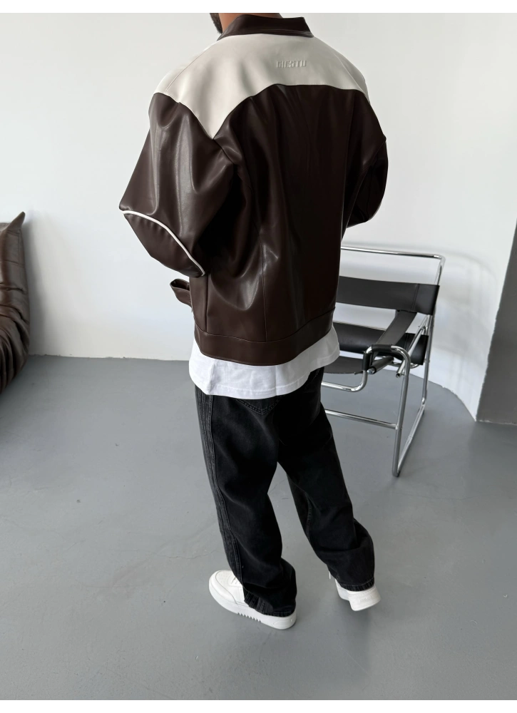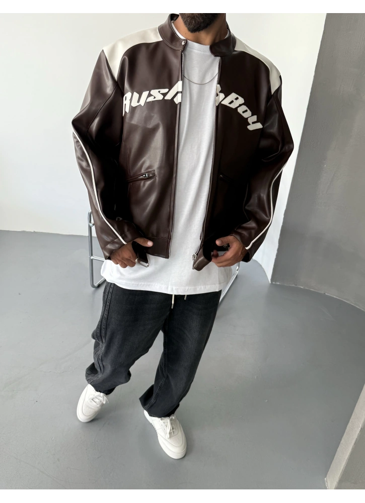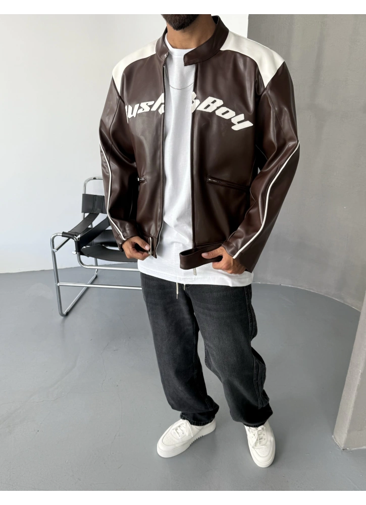 Biker tarzının ikonik çizgilerini modern baskı detaylarıyla bir araya getiren bu ceket, şıklığı ve özgün duruşu aynı anda sunuyor. Kaliteli suni deri dokusu sayesinde hem dayanıklı hem de konforlu bir kullanım sağlar. Kahve tonunun sıcak görünümü, her kombine kolayca uyum sağlar.