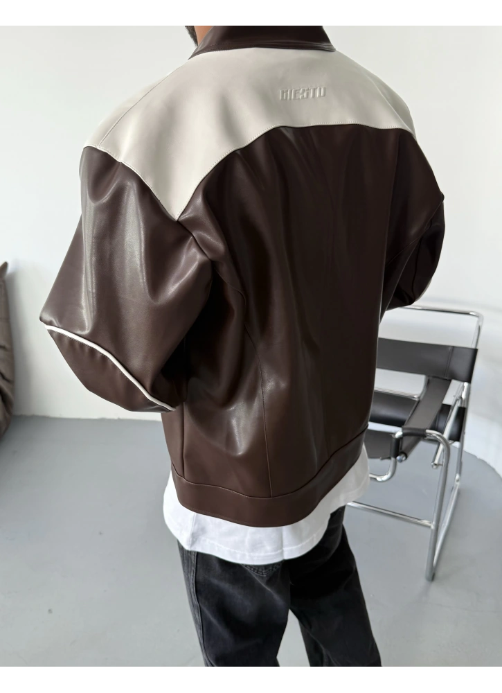 Kahve Baskılı Suni Deri Biker Ceket Hakkında