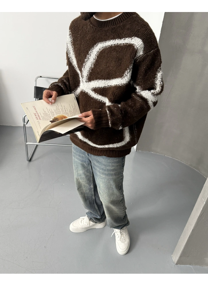 Kahve Desenli Oversize Kazak Hakkında