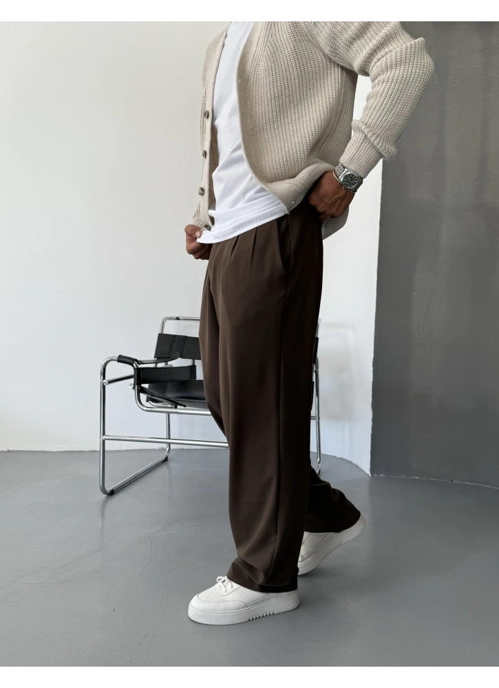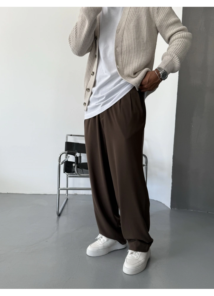 Kahve Pileli Kumaş Bol Kalıp Baggy Pantolon Hakkında
