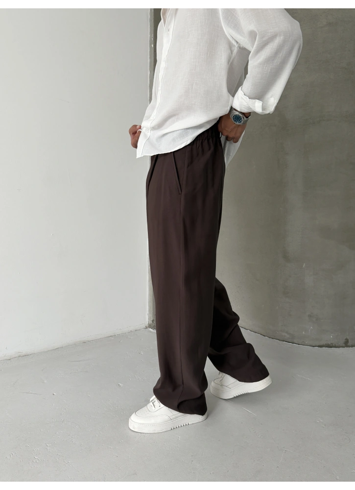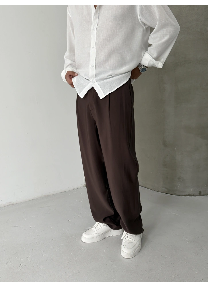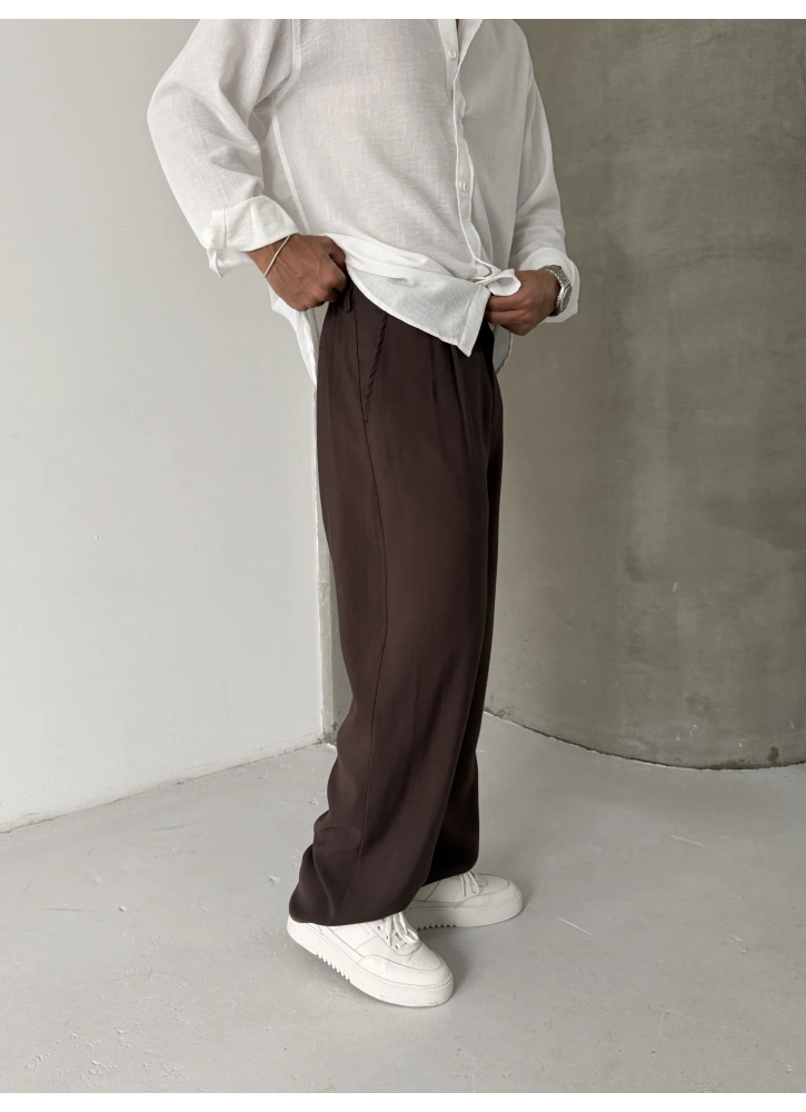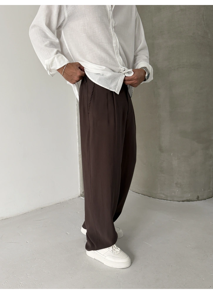Kahve Premium Pileli Bol Kalıp Kumaş Baggy