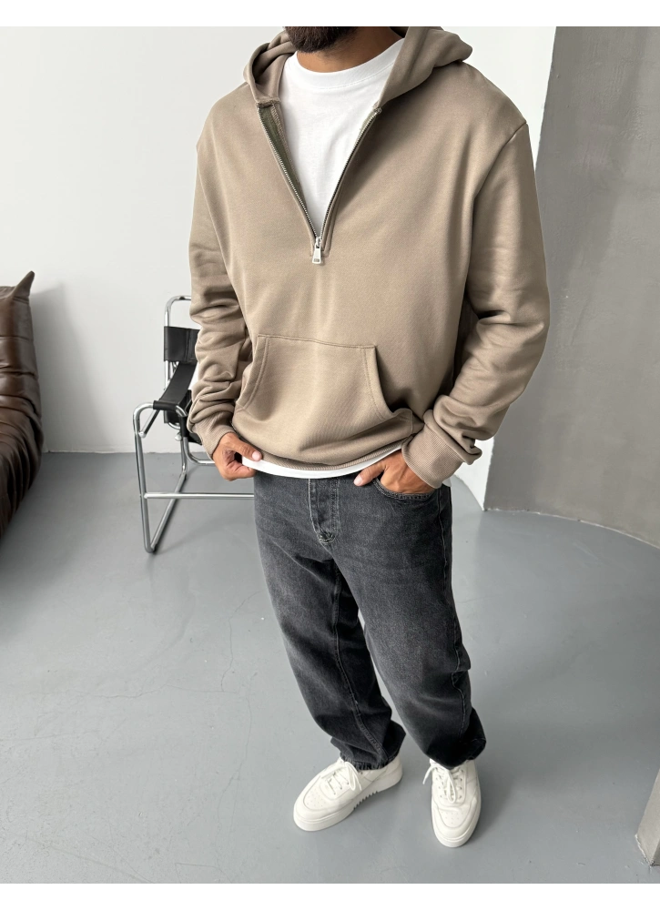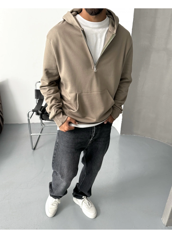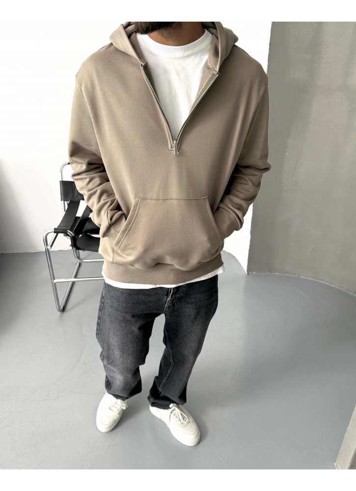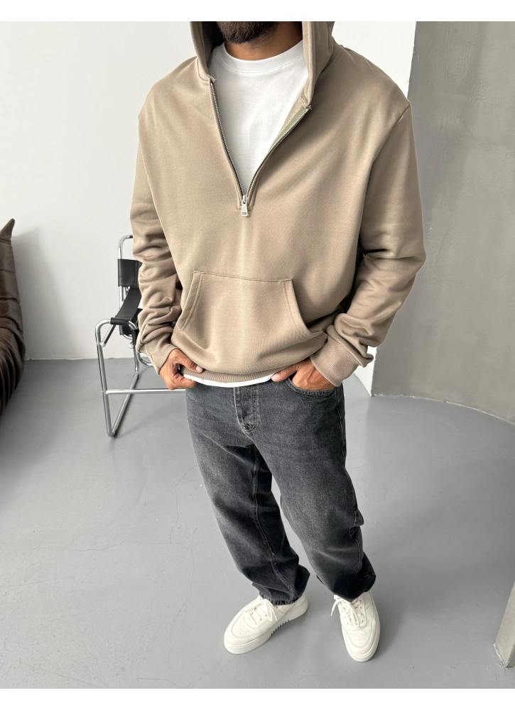 Kahve Yarım Fermuar Kapişonlu Sweatshirt Hakkında