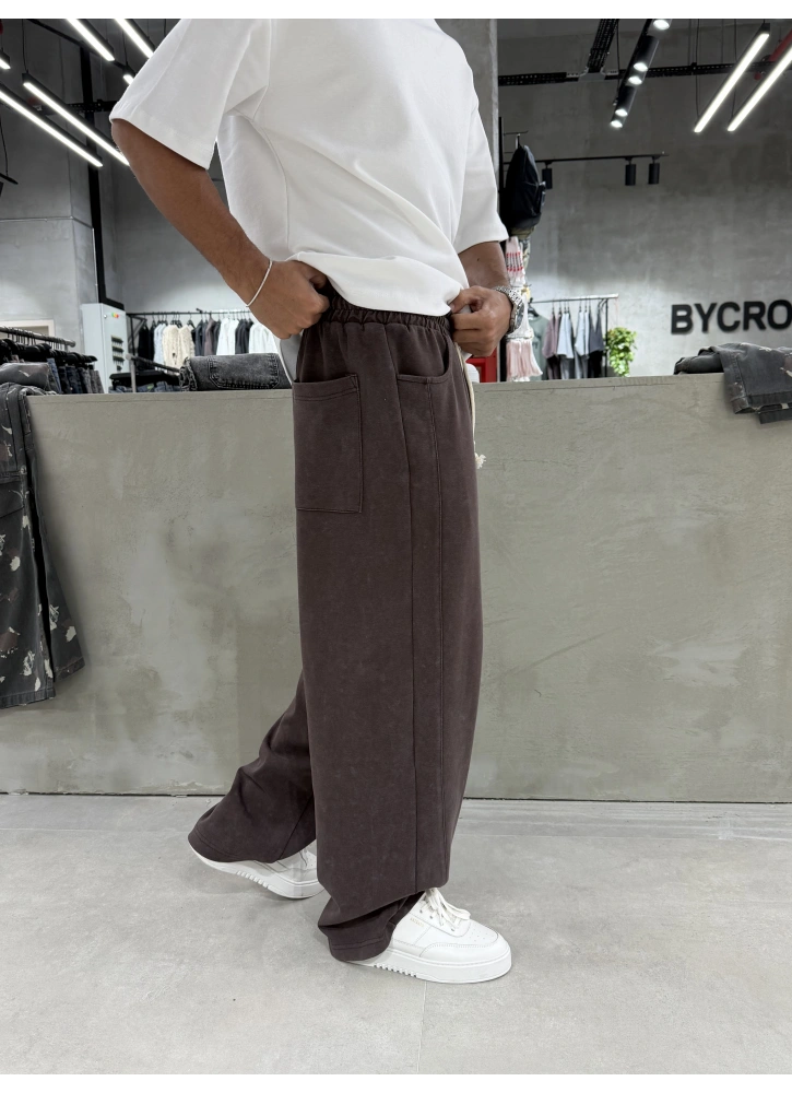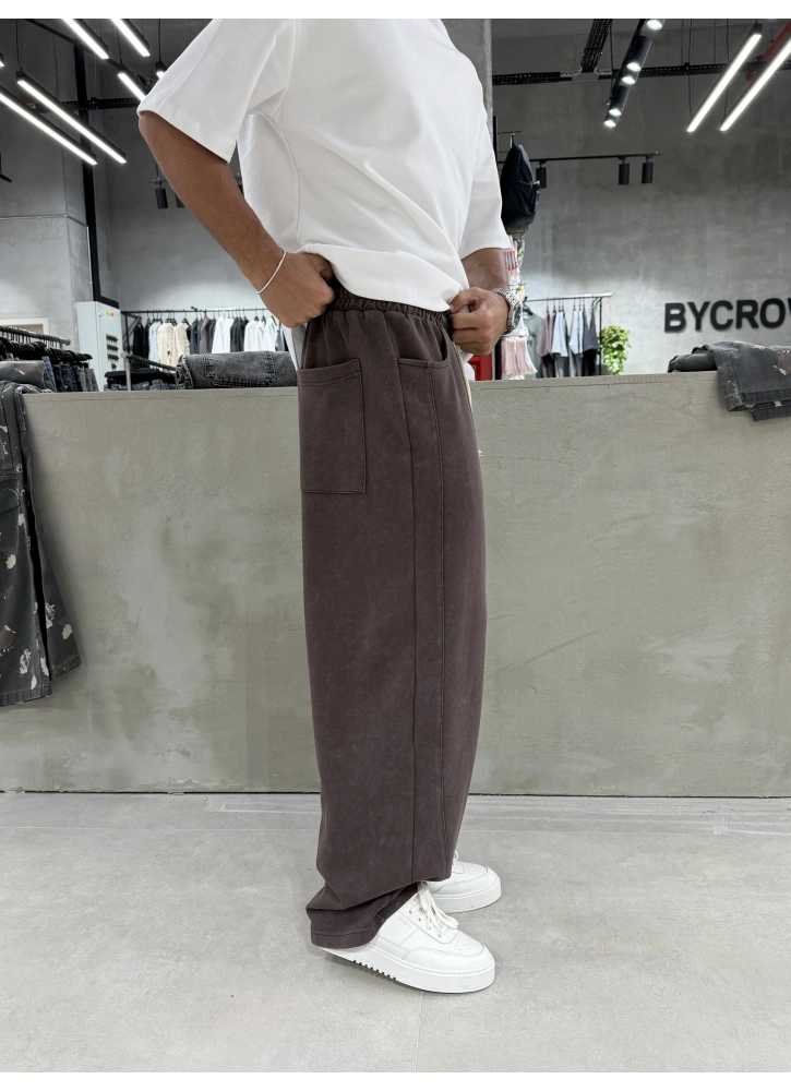 Kahve Yıkamalı Bol Kalıp Baggy Eşofman