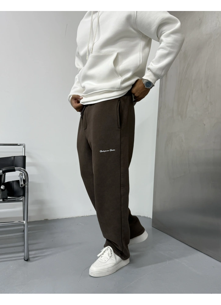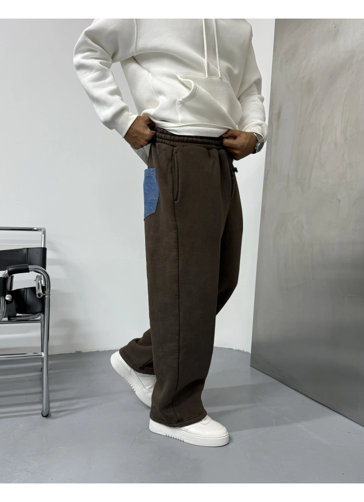 Kahve Yıkamalı Cep Detay Bol Kalıp Eşofman