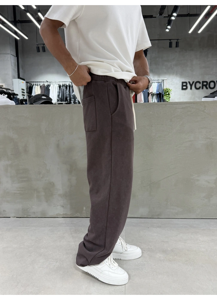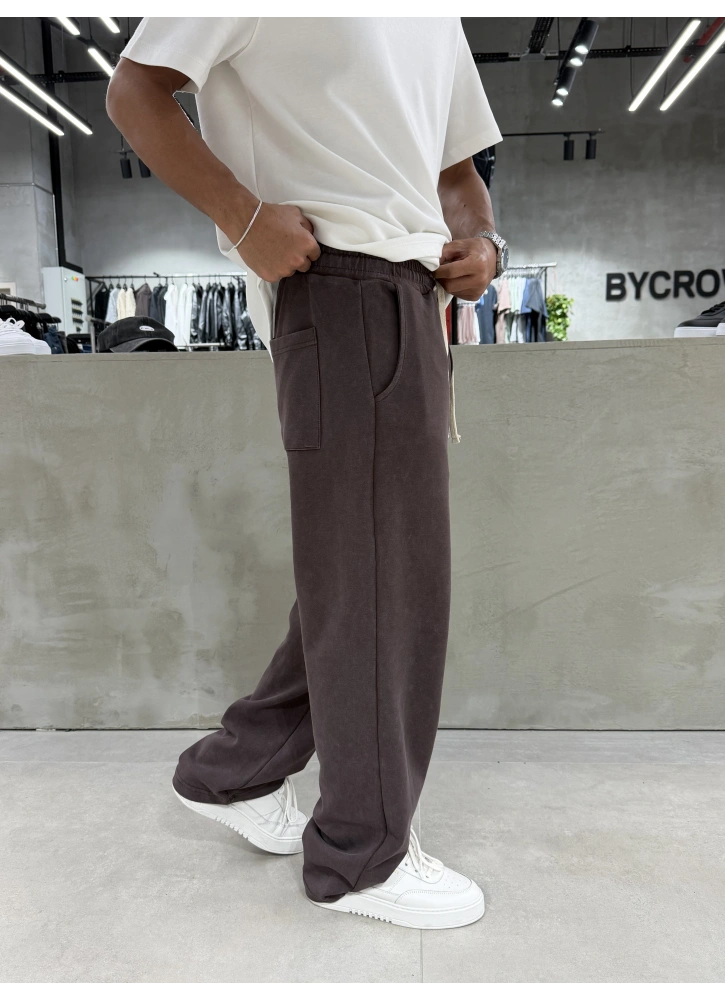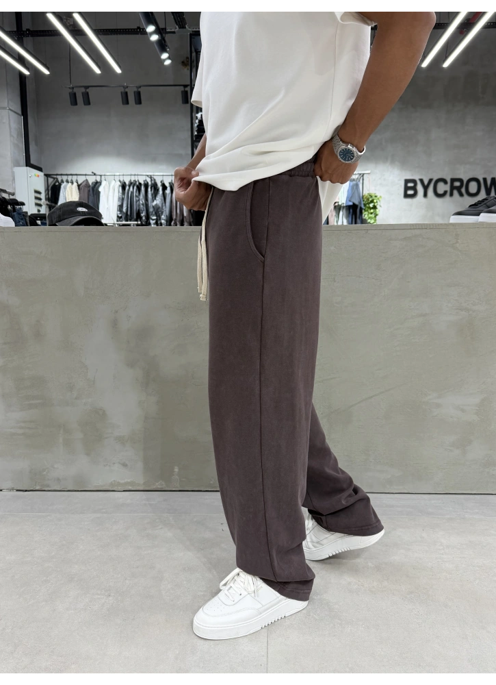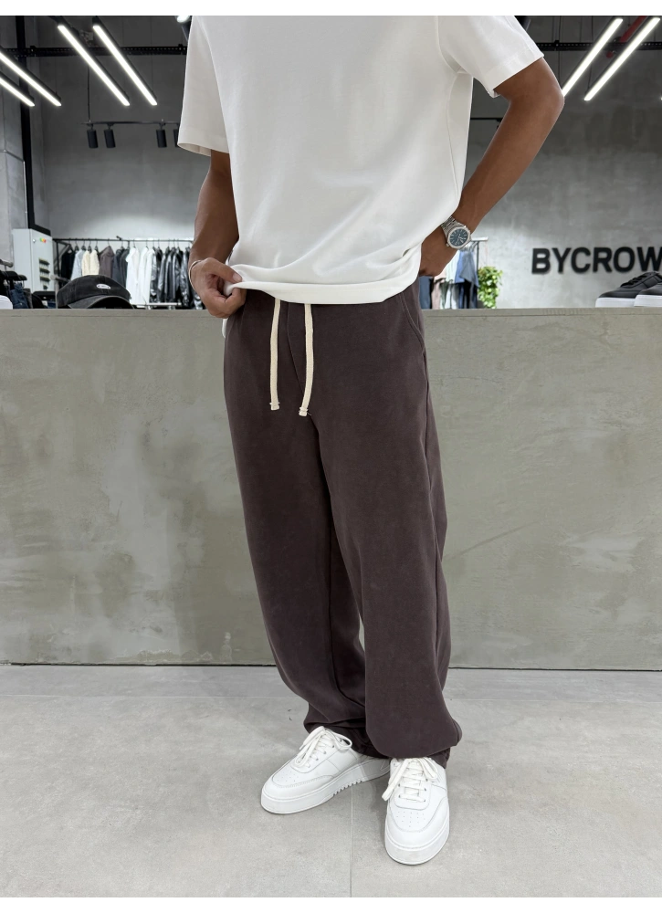 Kahve Yıkamalı Comfort Bol Kalıp Eşofman