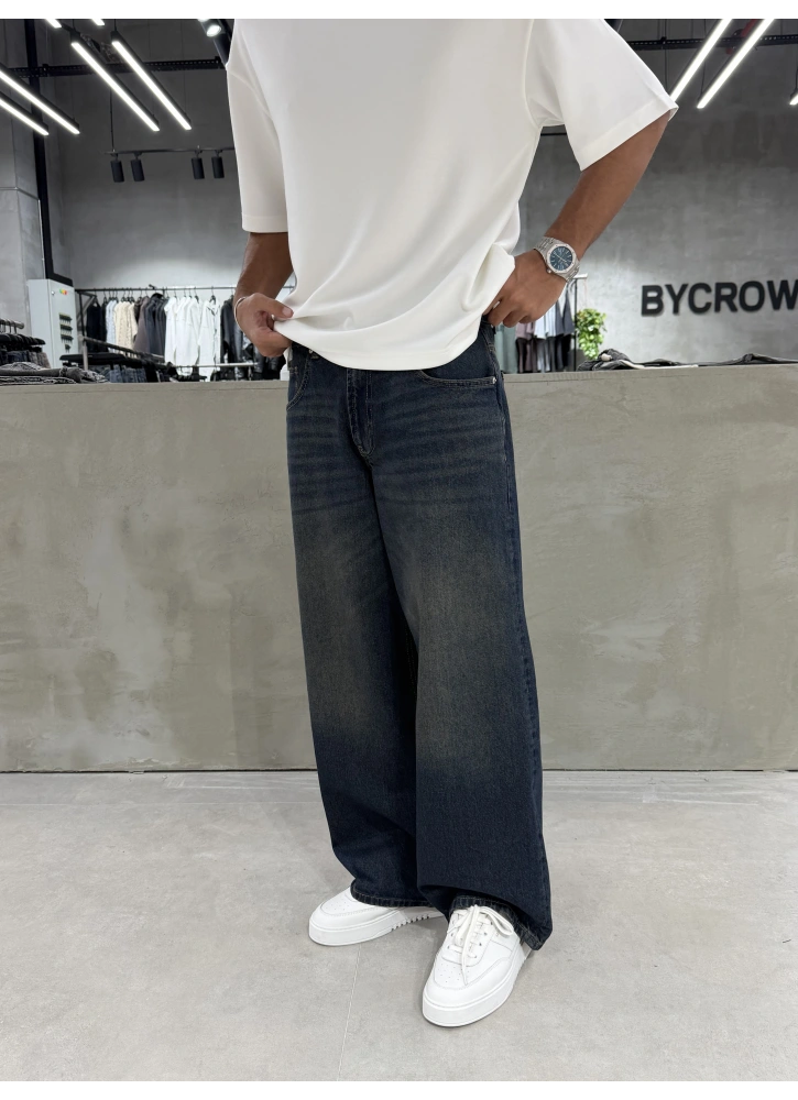 Koyu Mavi Eskitme Denim Süper Baggy Hakkında