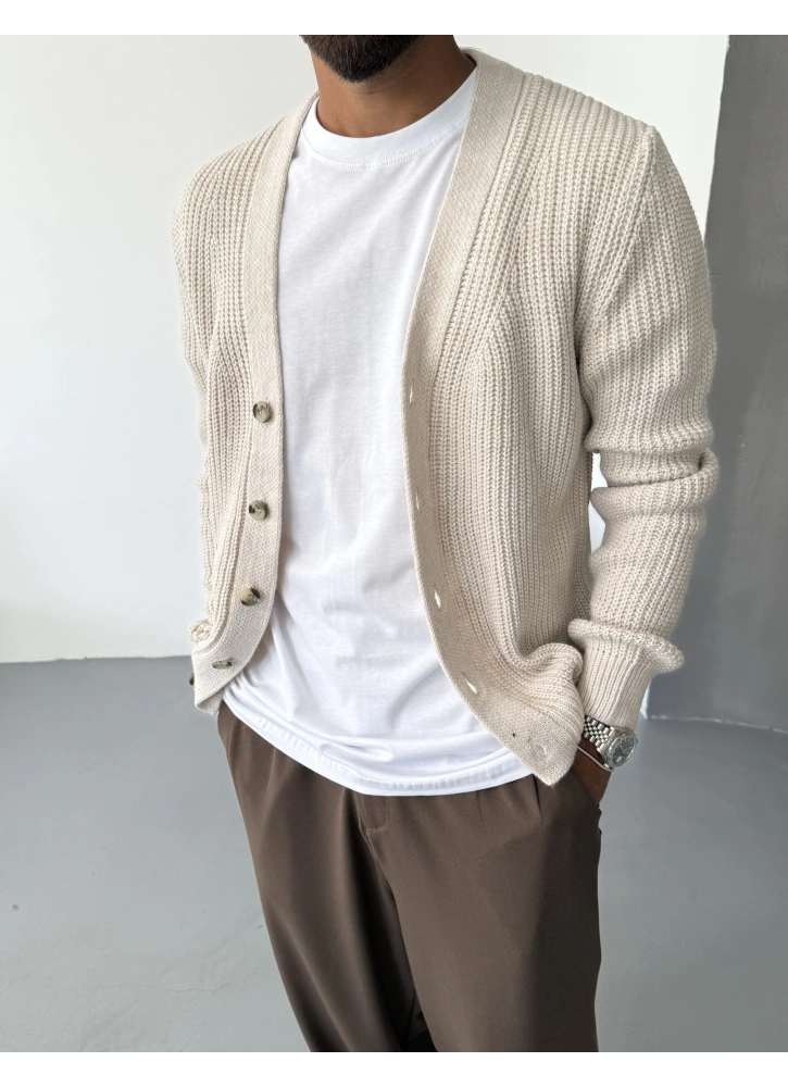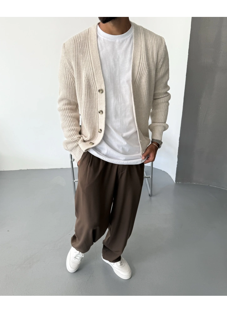 M bedende, yumuşak triko dokusu ve oversize kalıbıyla gün boyu rahatlık sunar. Krem rengiyle sade ve zarif bir görünüm kazandırırken, düğmeli tasarımı sayesinde hem şık hem de kullanışlı bir parça olarak öne çıkar. Basic tişörtler ve denim pantolonlarla kolayca kombinlenebilir, günlük stilinize modern bir dokunuş katar.