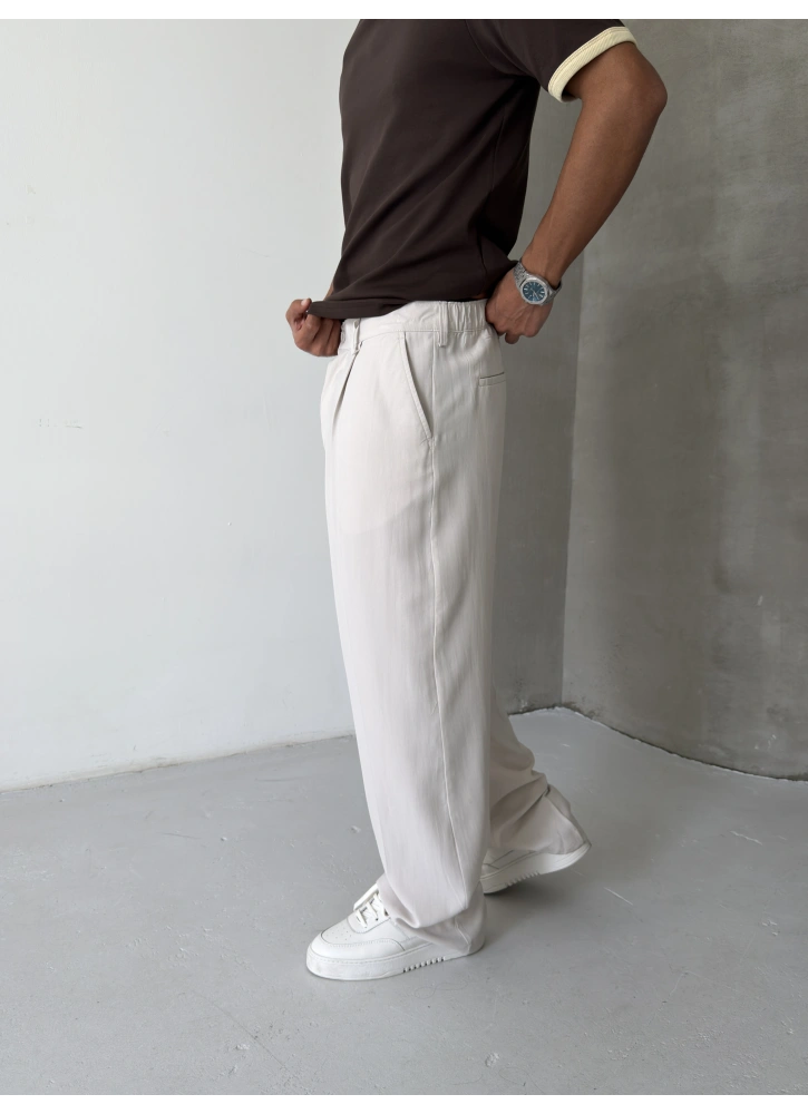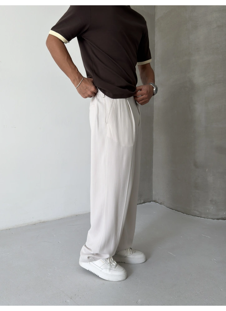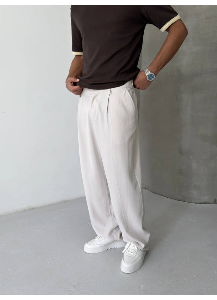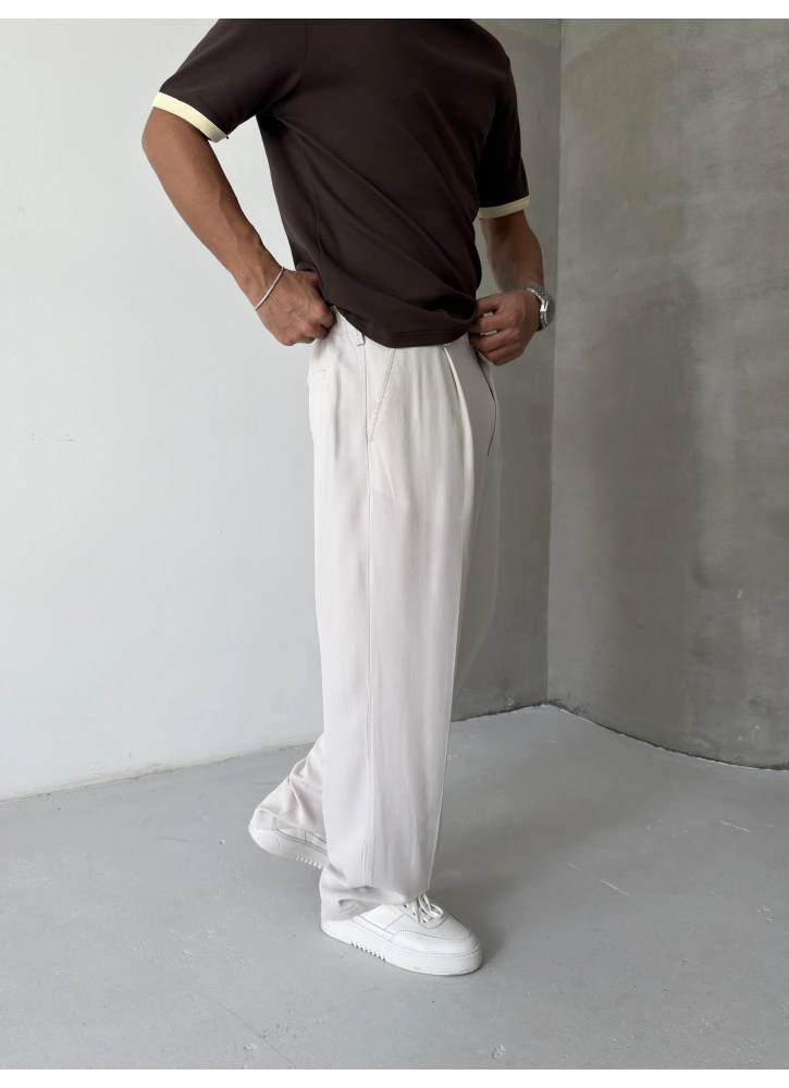 Krem Premium Pileli Bol Kalıp Kumaş Baggy