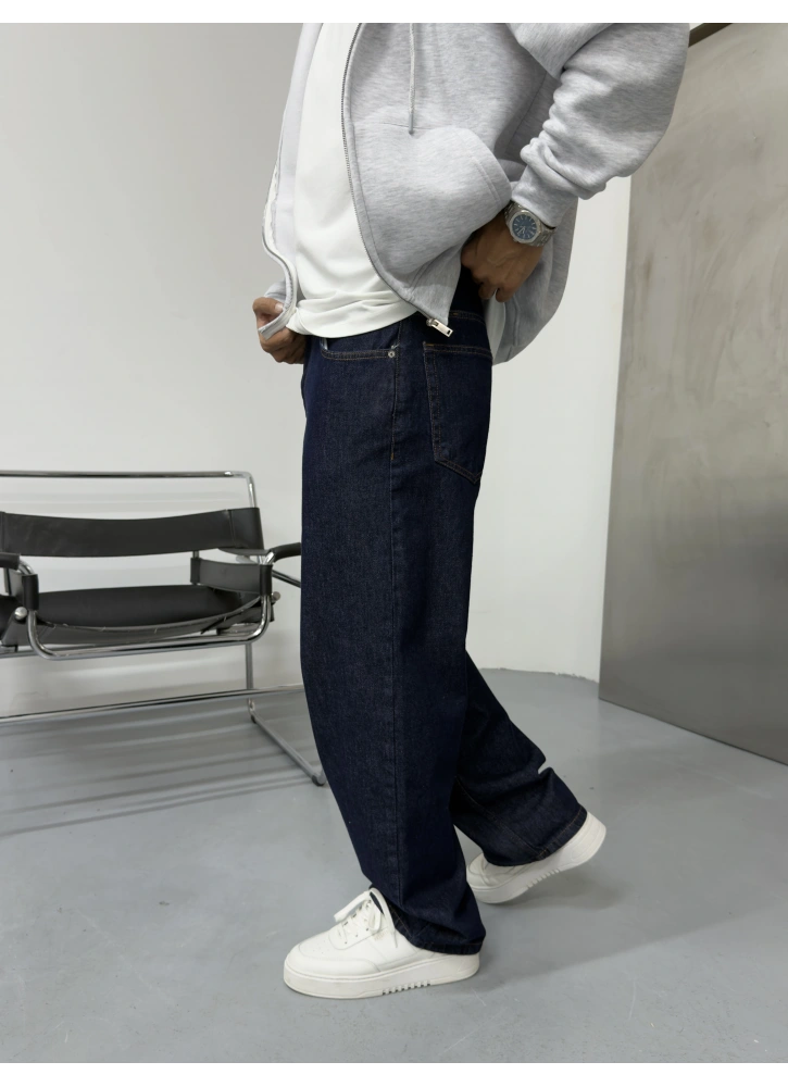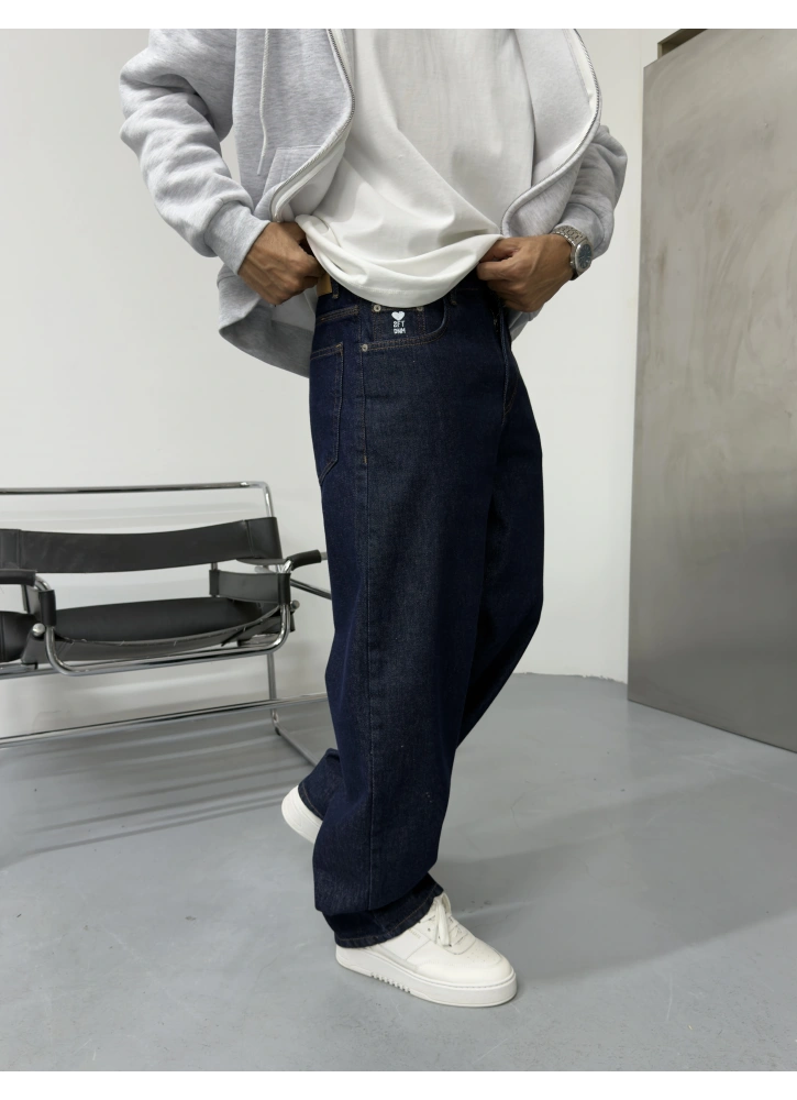 Koyu lacivert tonuyla temiz, modern ve zamansız bir görünüm sunan bu bol kalıp baggy jean; rahat kesimi, hafif dökümlü yapısı ve premium denim dokusuyla streetwear stiline güçlü bir duruş kazandırır. Günlük kullanıma uygun esnek yapısı sayesinde hem konforlu hem de cool bir fit sağlar.