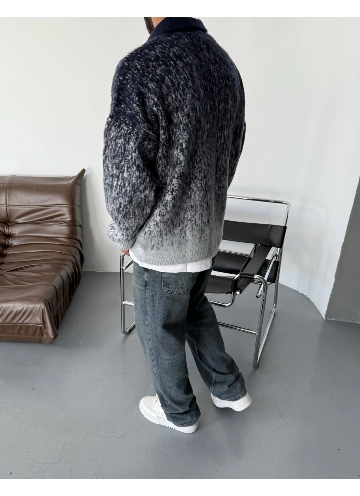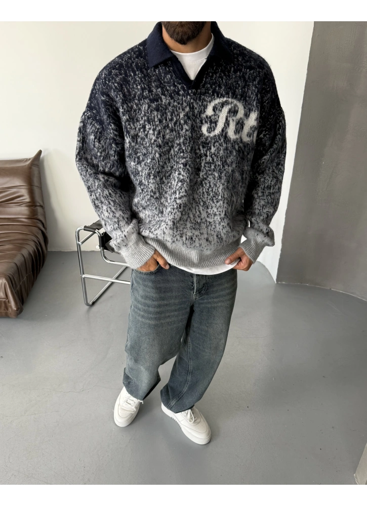 Lacivert Retro Baskılı Oversize Triko Kazak Hakkında