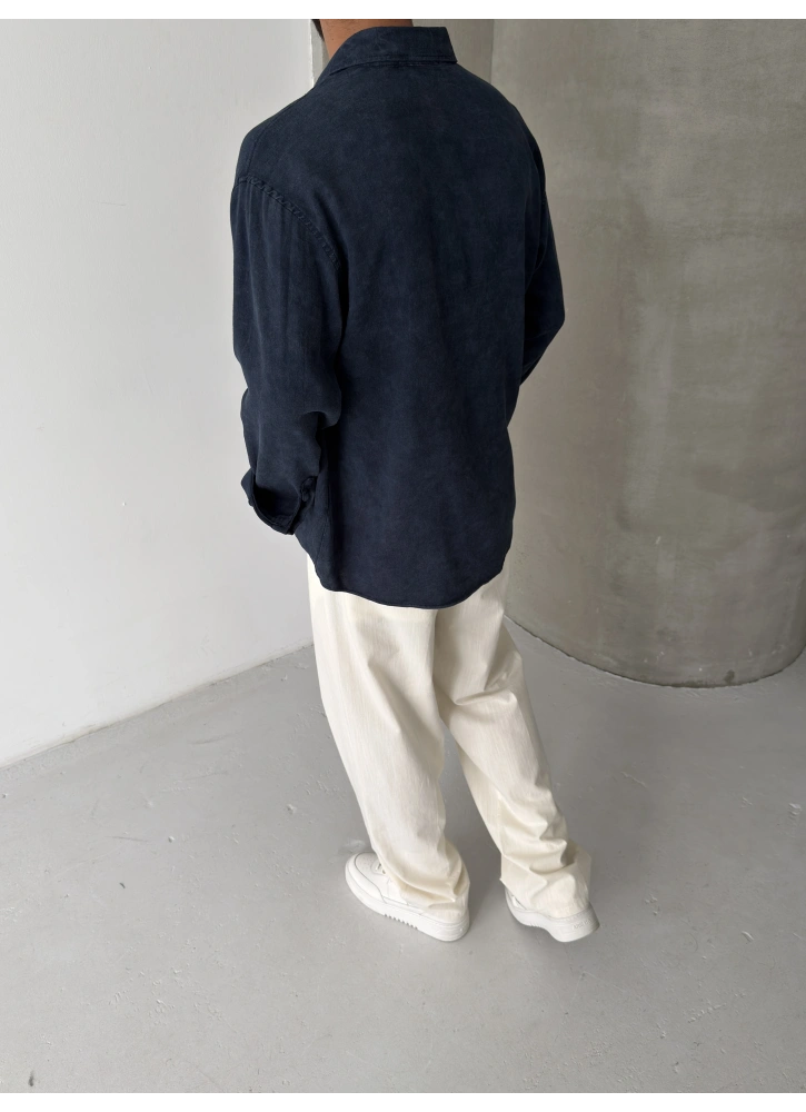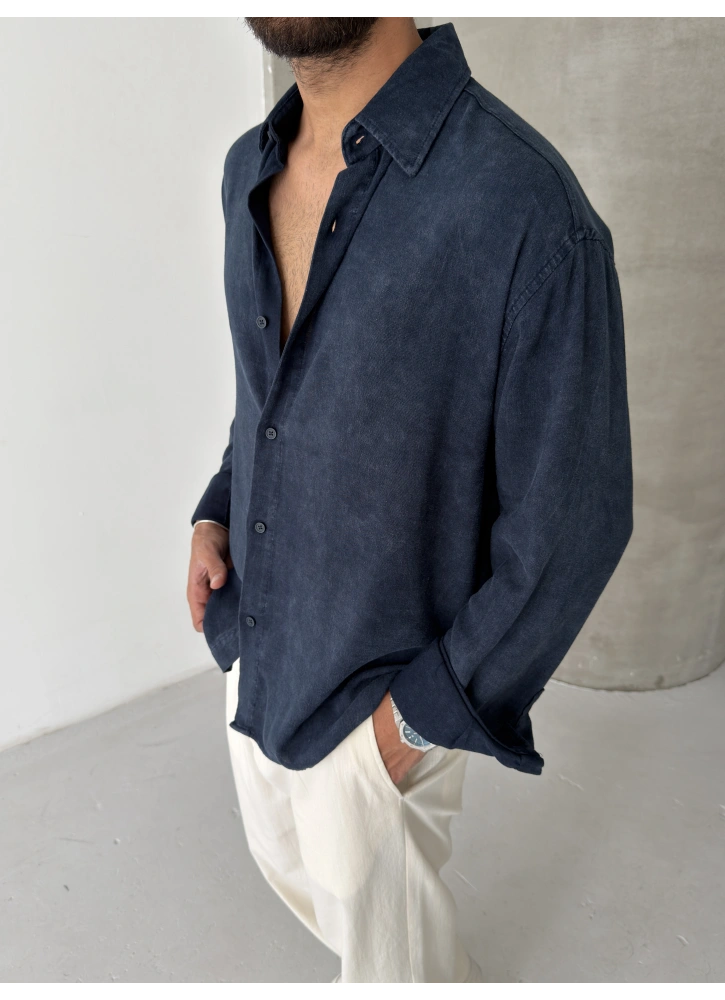 Lacivert Yıkamalı Oversize Viskon Gömlek